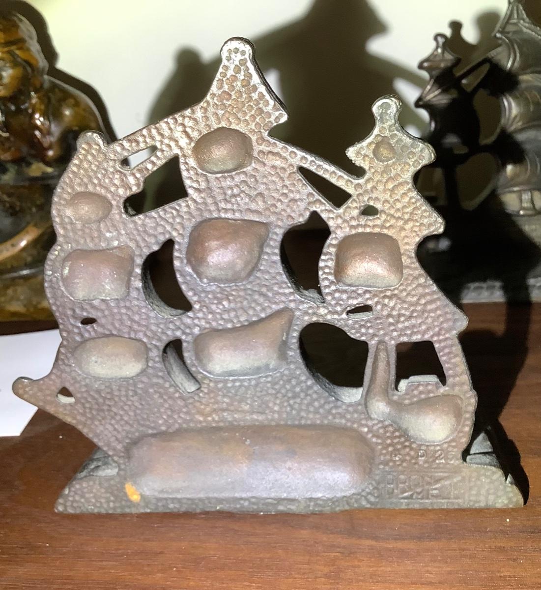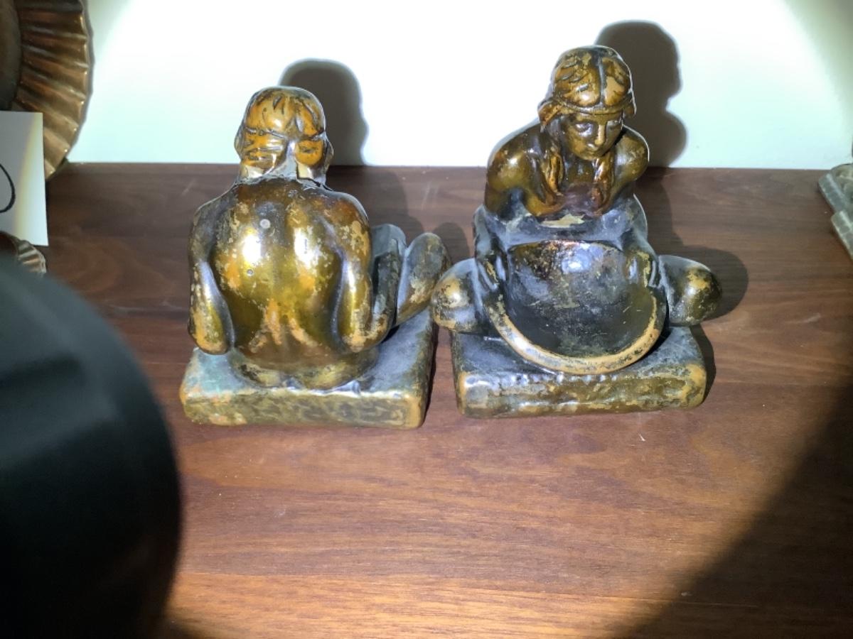 Bronmet Ship bookends measure 5-1/4” tall x 5-1/2” wide, Native American Girl bookends have been broken and repaired (see photos), measures 6” tall x 4-1/4” x 3-1/2” base