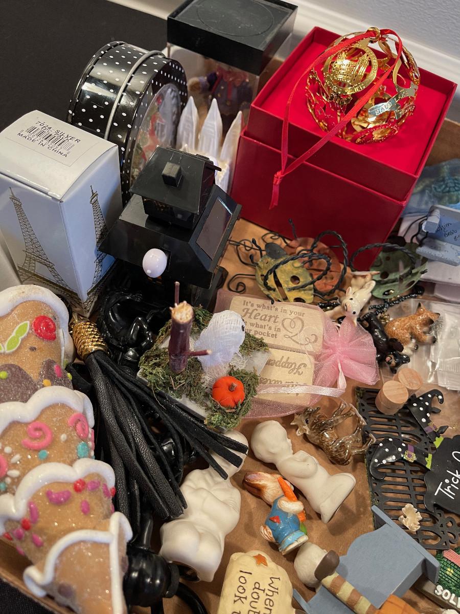 #491 Tray of Miniatures, Ornament, Christmas Tree.