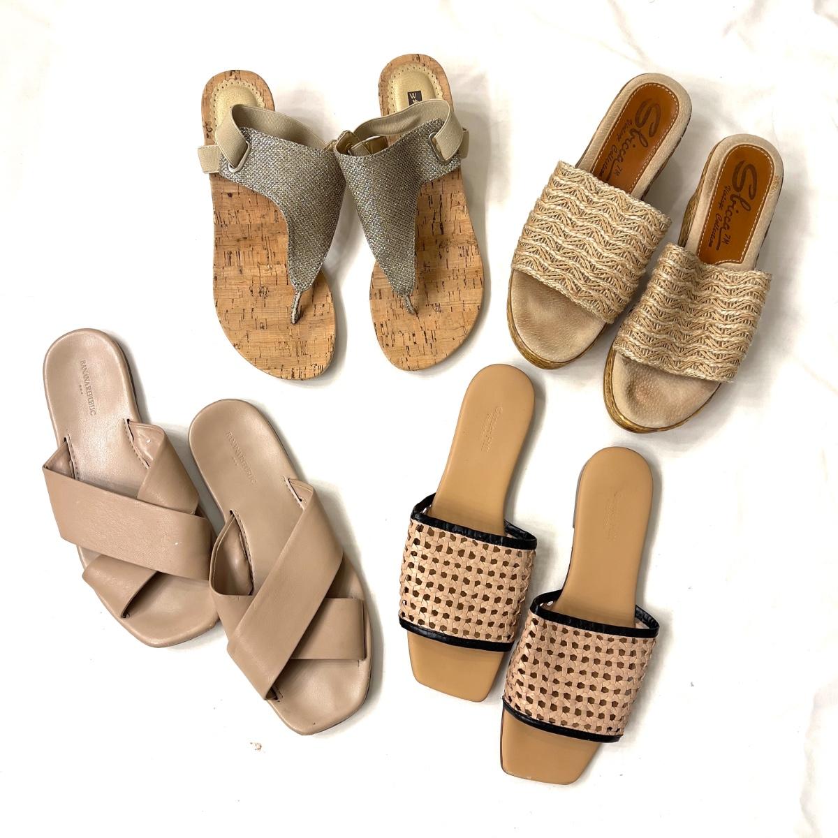492 Lot of Ladies Sandals , Banana Republic, Garnet Hill, White Mountain, Sbicca