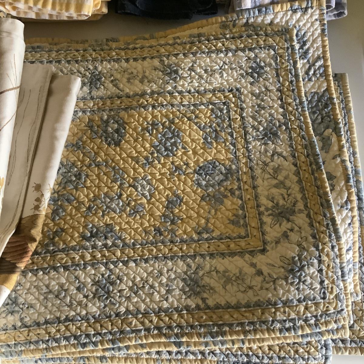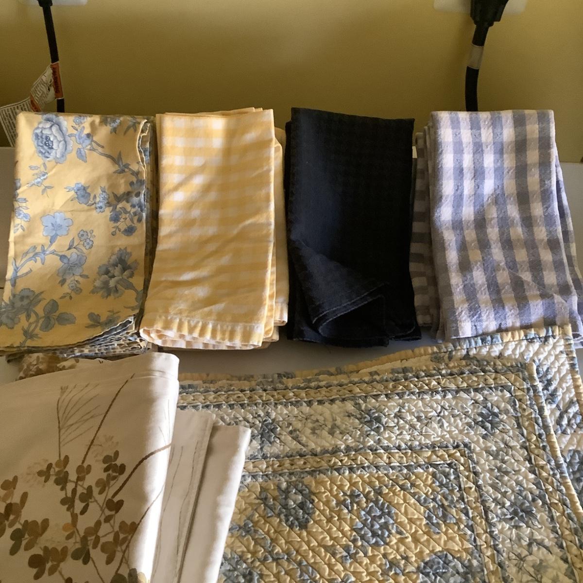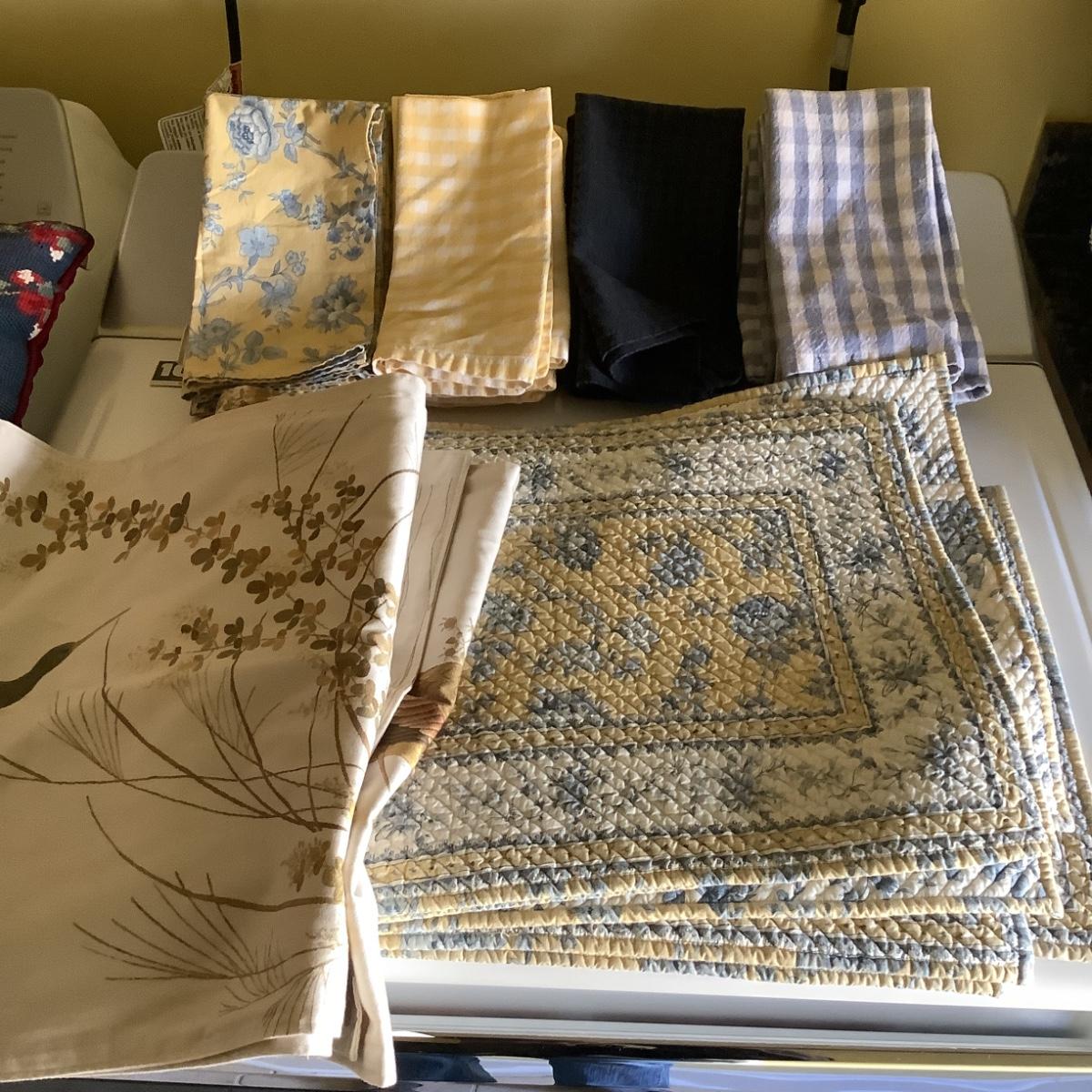 4 sets of washcloths, 1 set of placemats and table skirt.