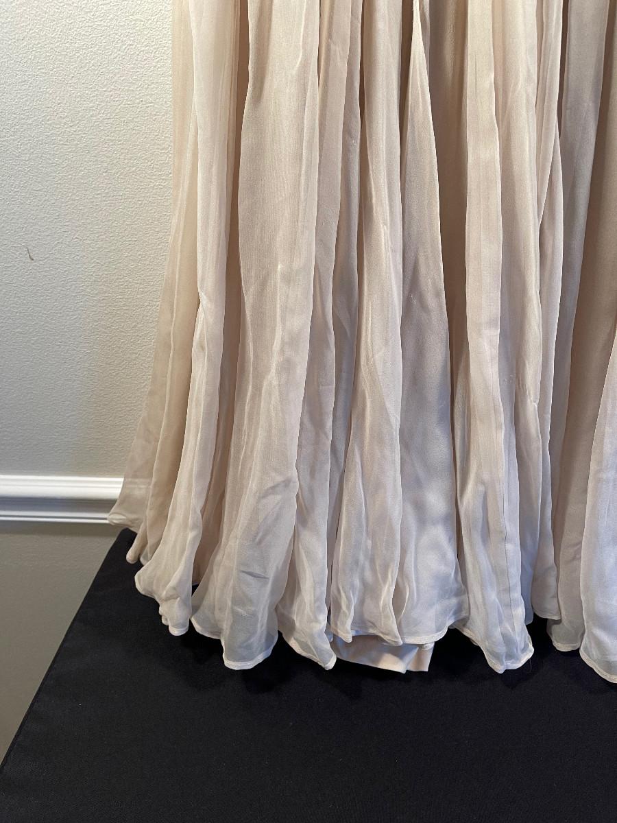 Est Size 12 Purchase for repair or Display only - has extensive damage. If reworked, would make and incredible Wedding Dress. Hand impressive bead work.