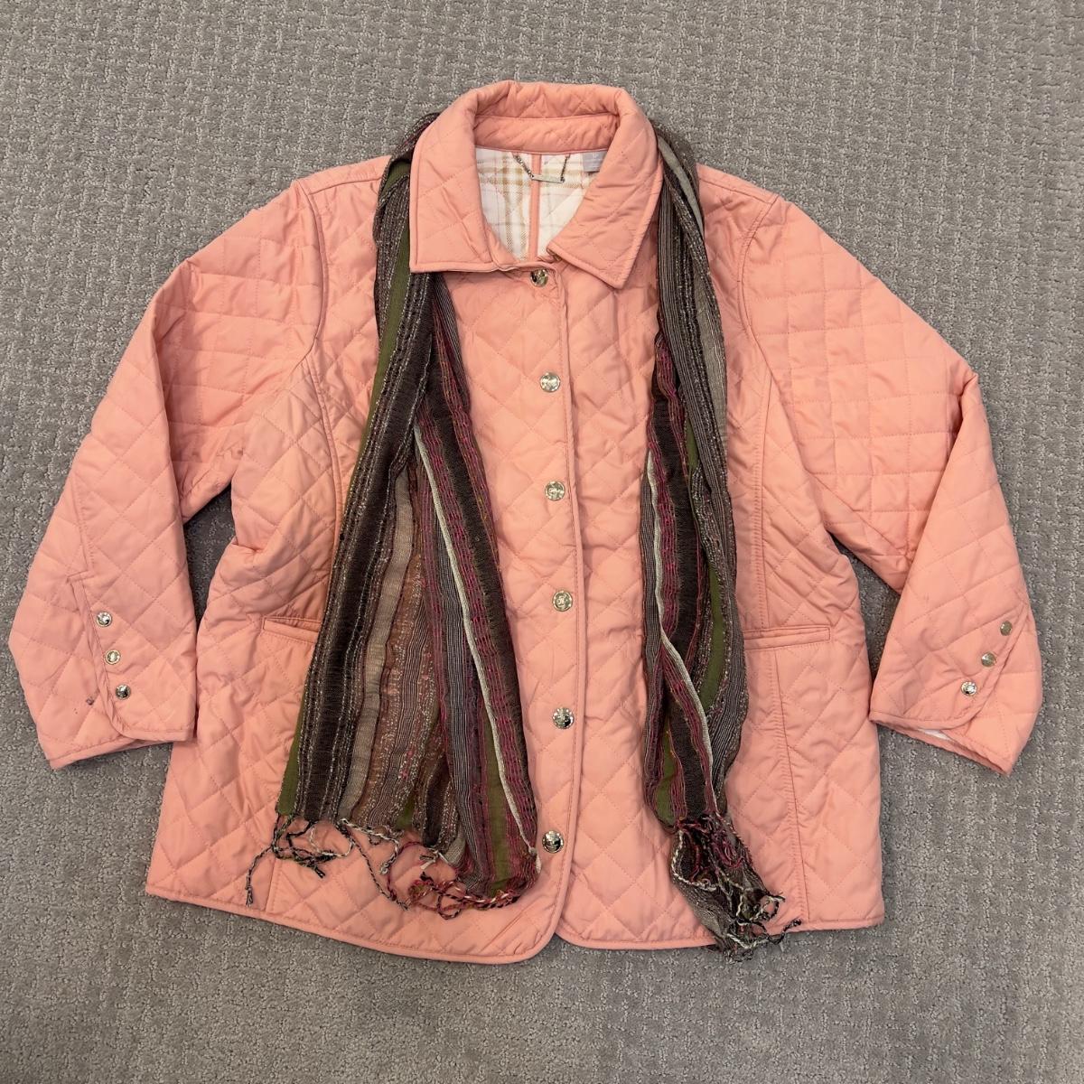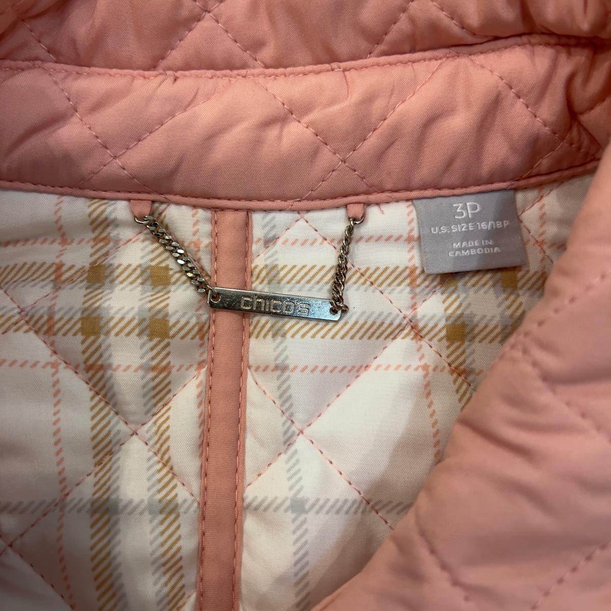 497 CHICO'S Pink Quilted Jacket with Scarf Size 3P
