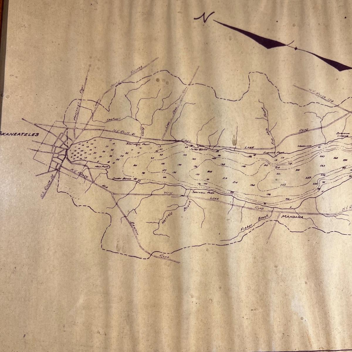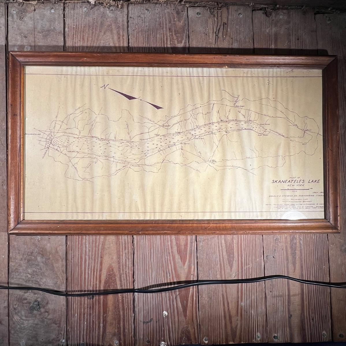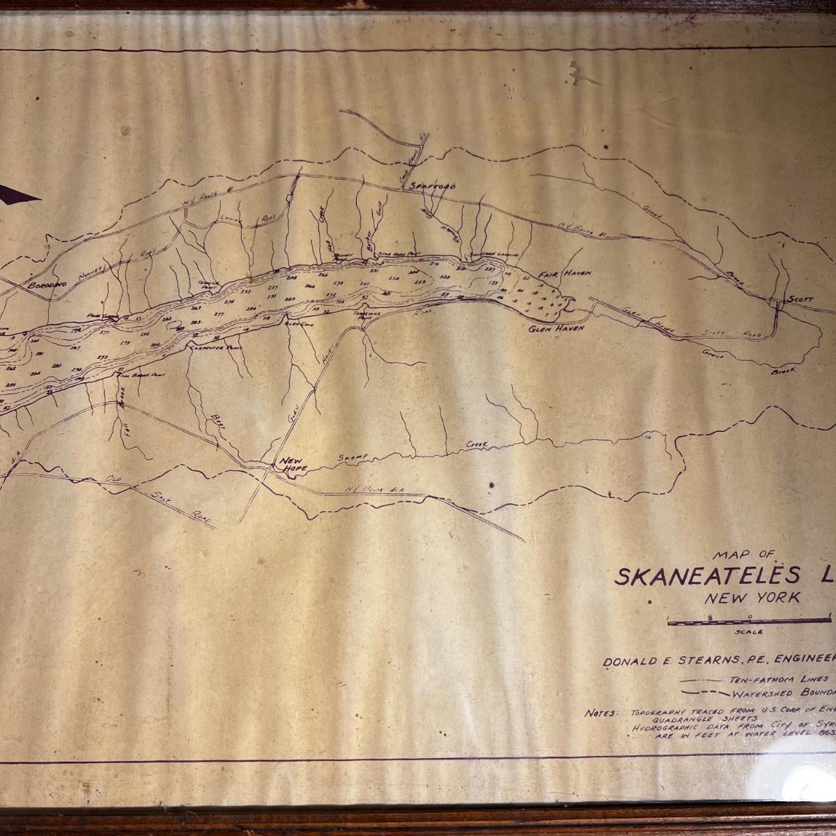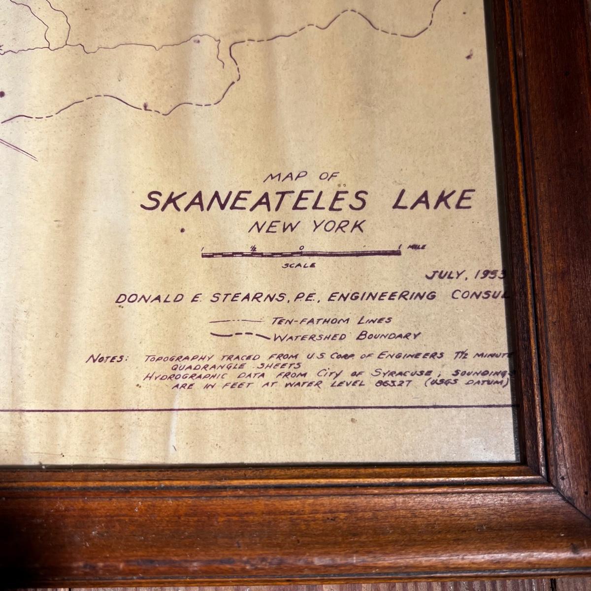 N498 Framed Blueprint of Skaneatelas Lake New York Topography 1955