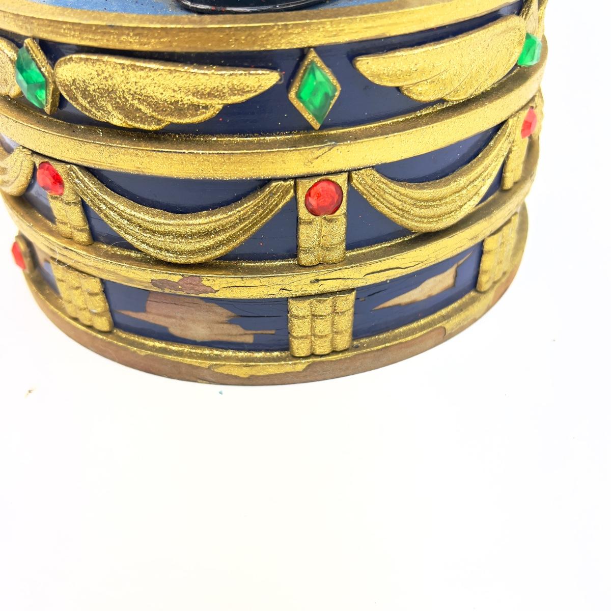 Measuring 37 inches high number 175 out of 900 there is some paint flaking, missing embellishments, music box plays but needs some TLC, missing feathers at top of hat.