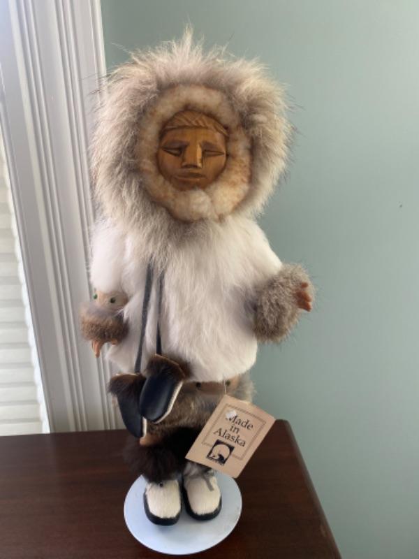 1) Hand Carved Alaskan Doll measures 15” Tall