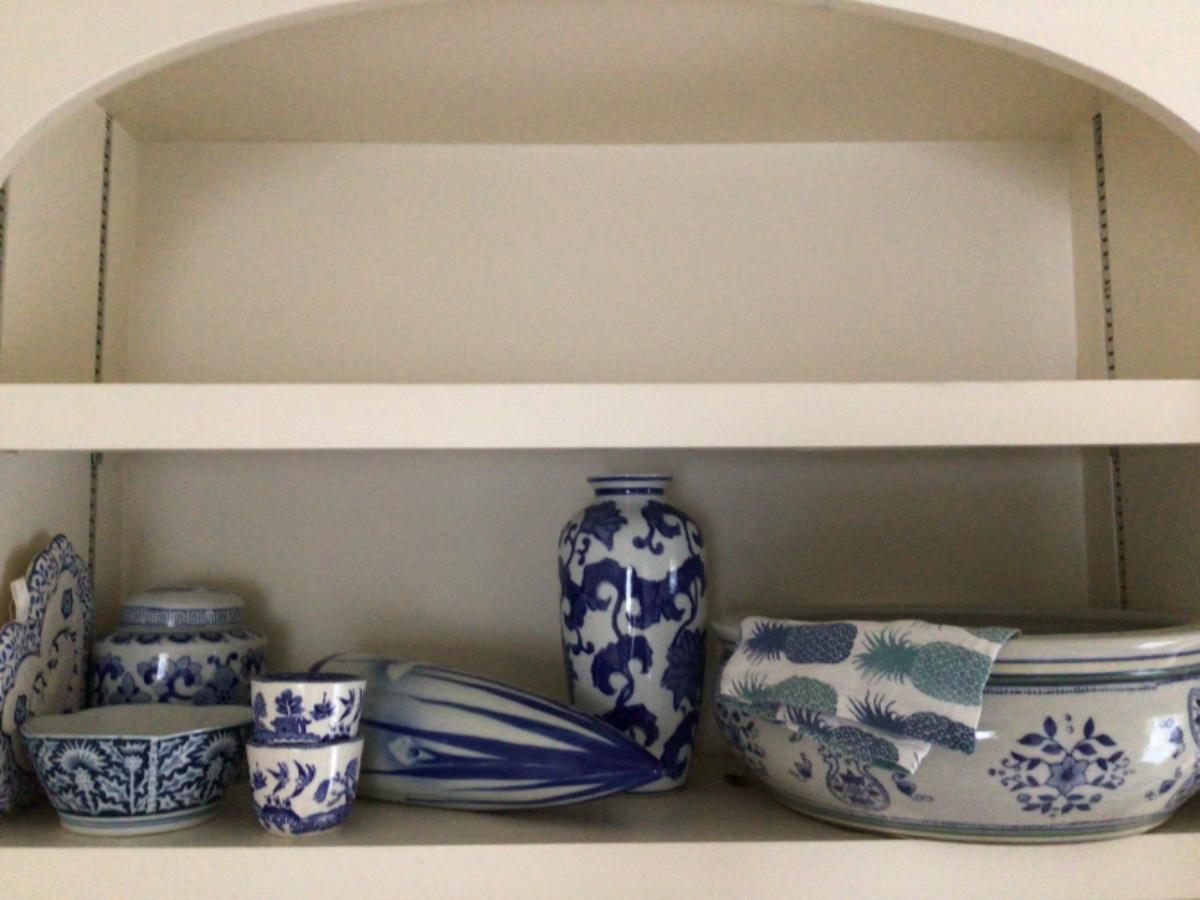 D499 Blue and White Pottery Lot with Wall Pocket