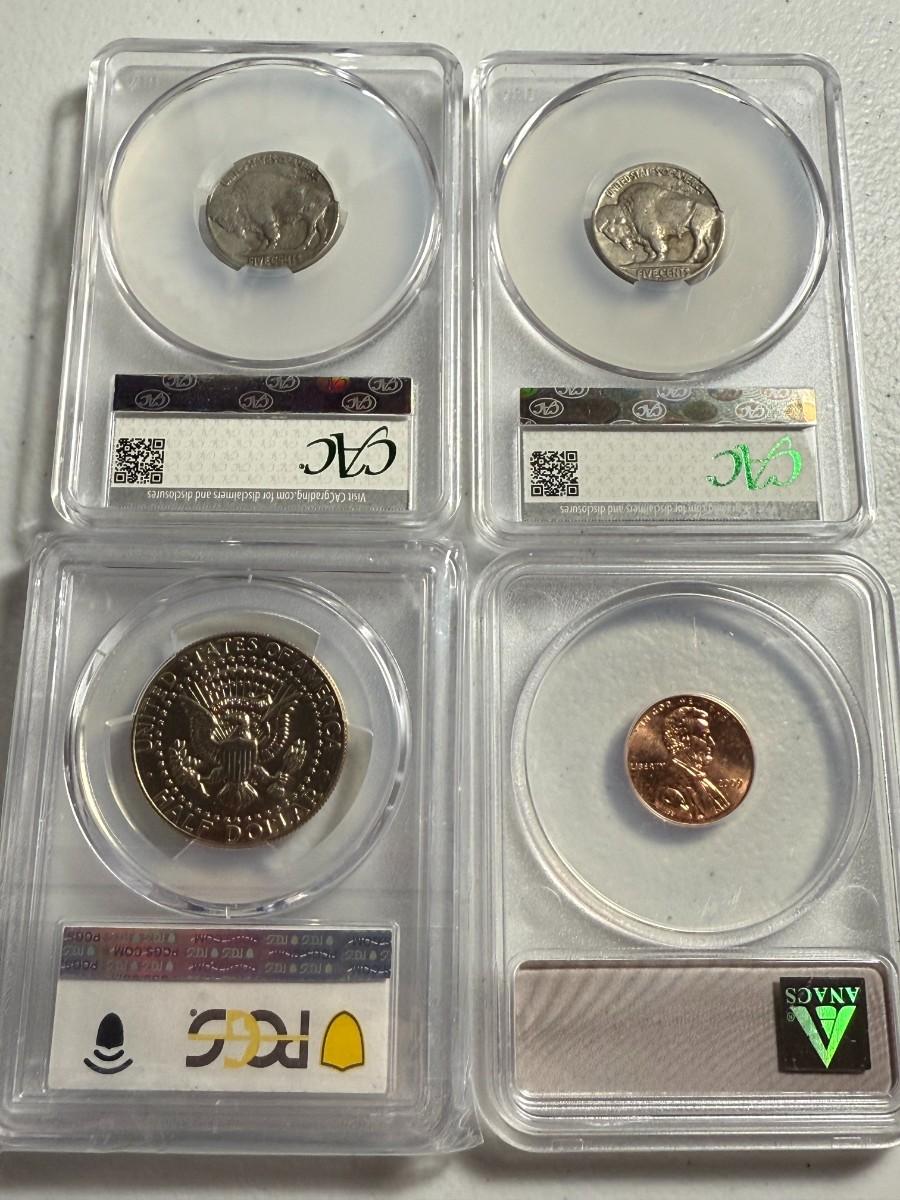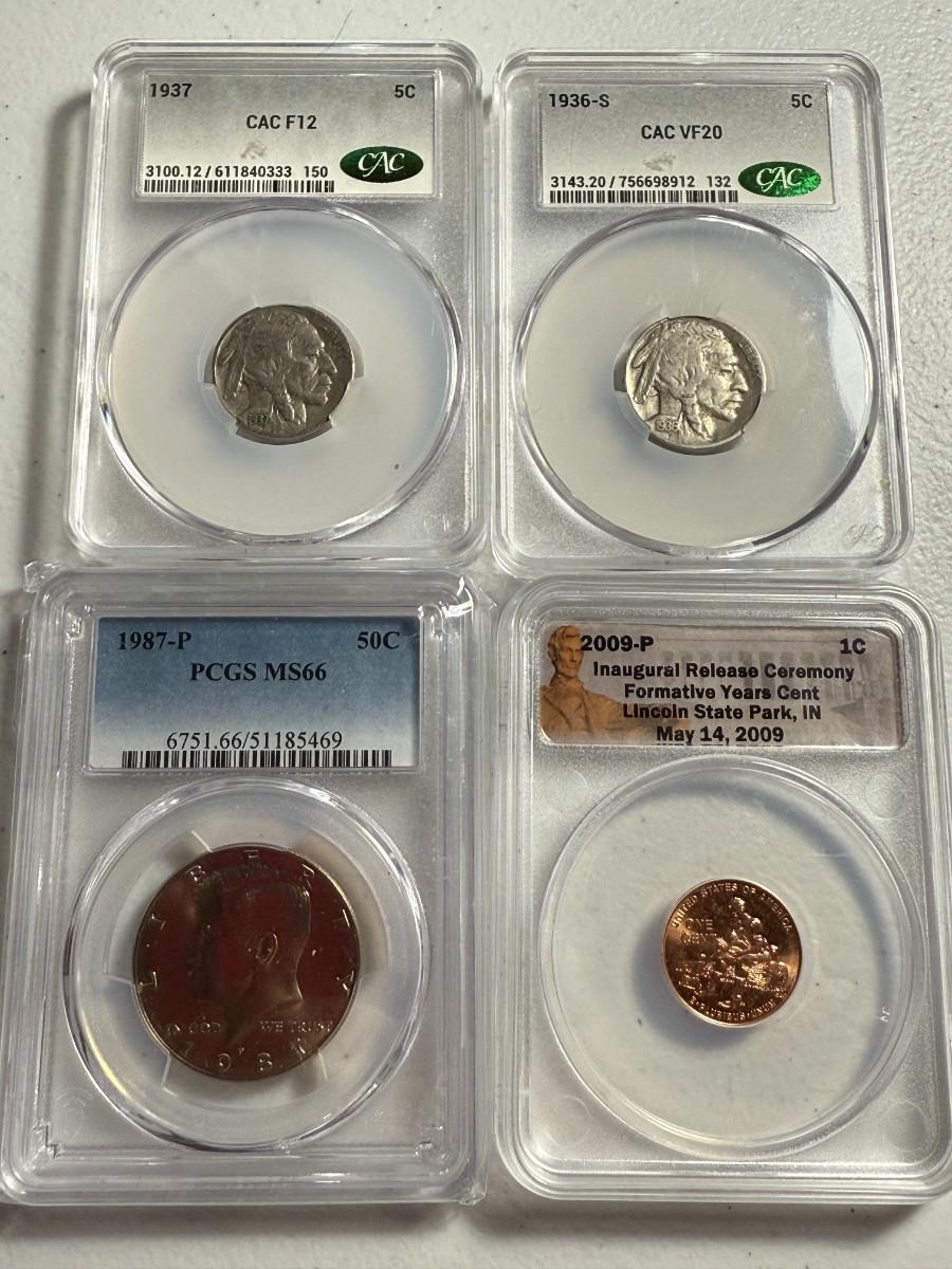 4-ASSORTED MISCELLAEOUS CERTIFIED GRADED COINS AS PICTURED. $5 DOMESTIC SHIPPING.