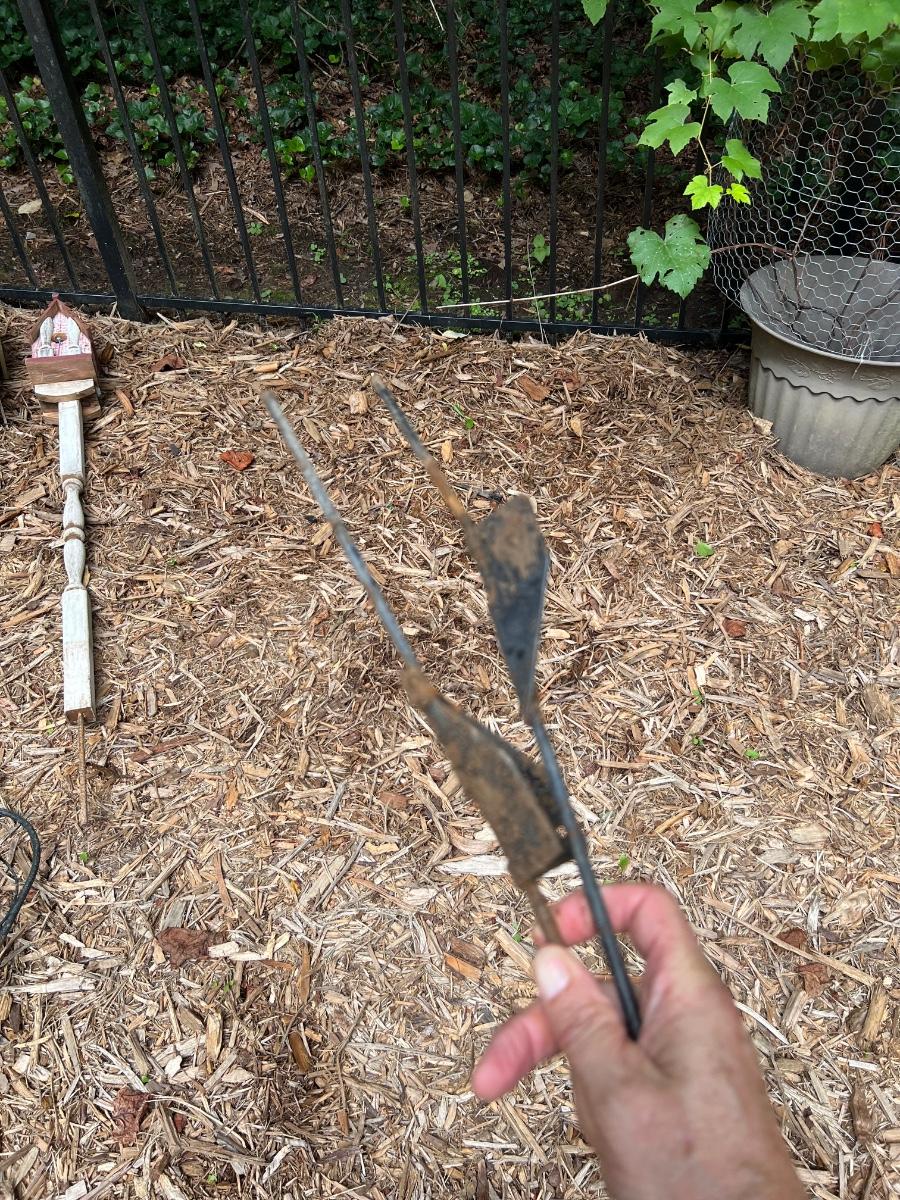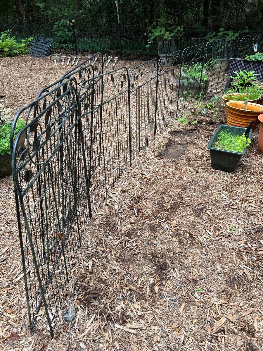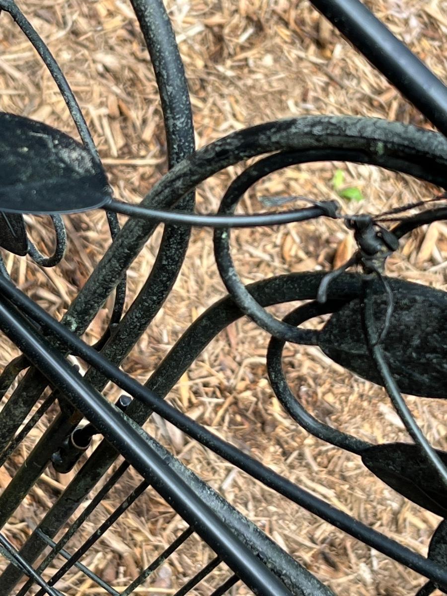 12 panels in total are approximately 3’ x 4’H. Buyer will need to purchase stakes to attach them outdoors as only 2 are included. The panels have mildew and some surface rust and one leaf on one panel has been tied up, see pic.