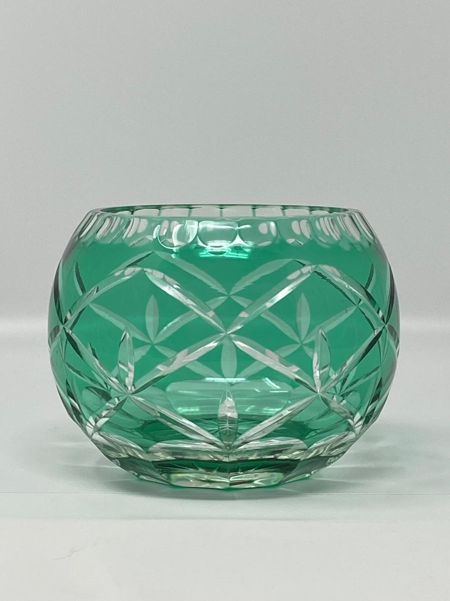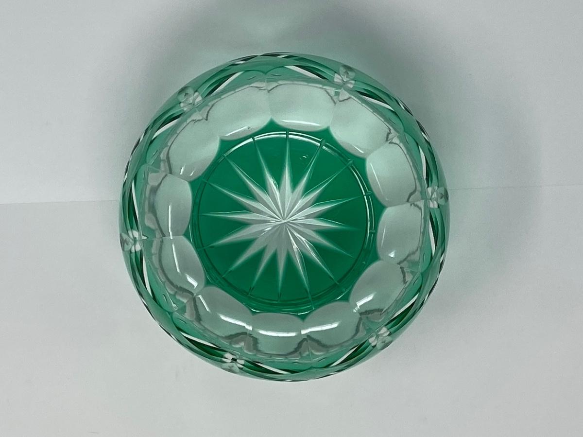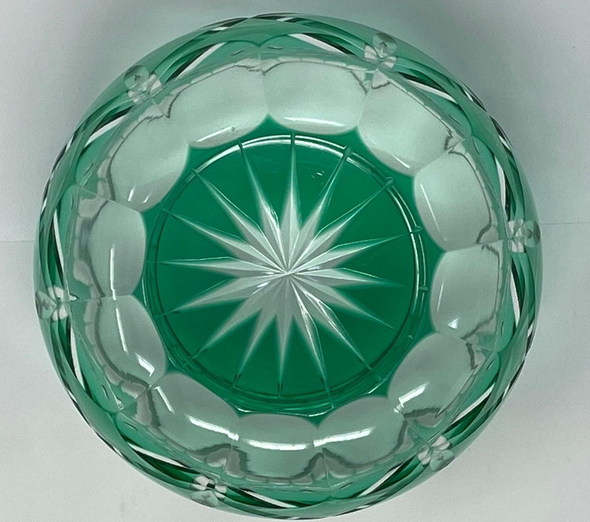 4in Emerald Color and Clear Cut Crystal Bowl