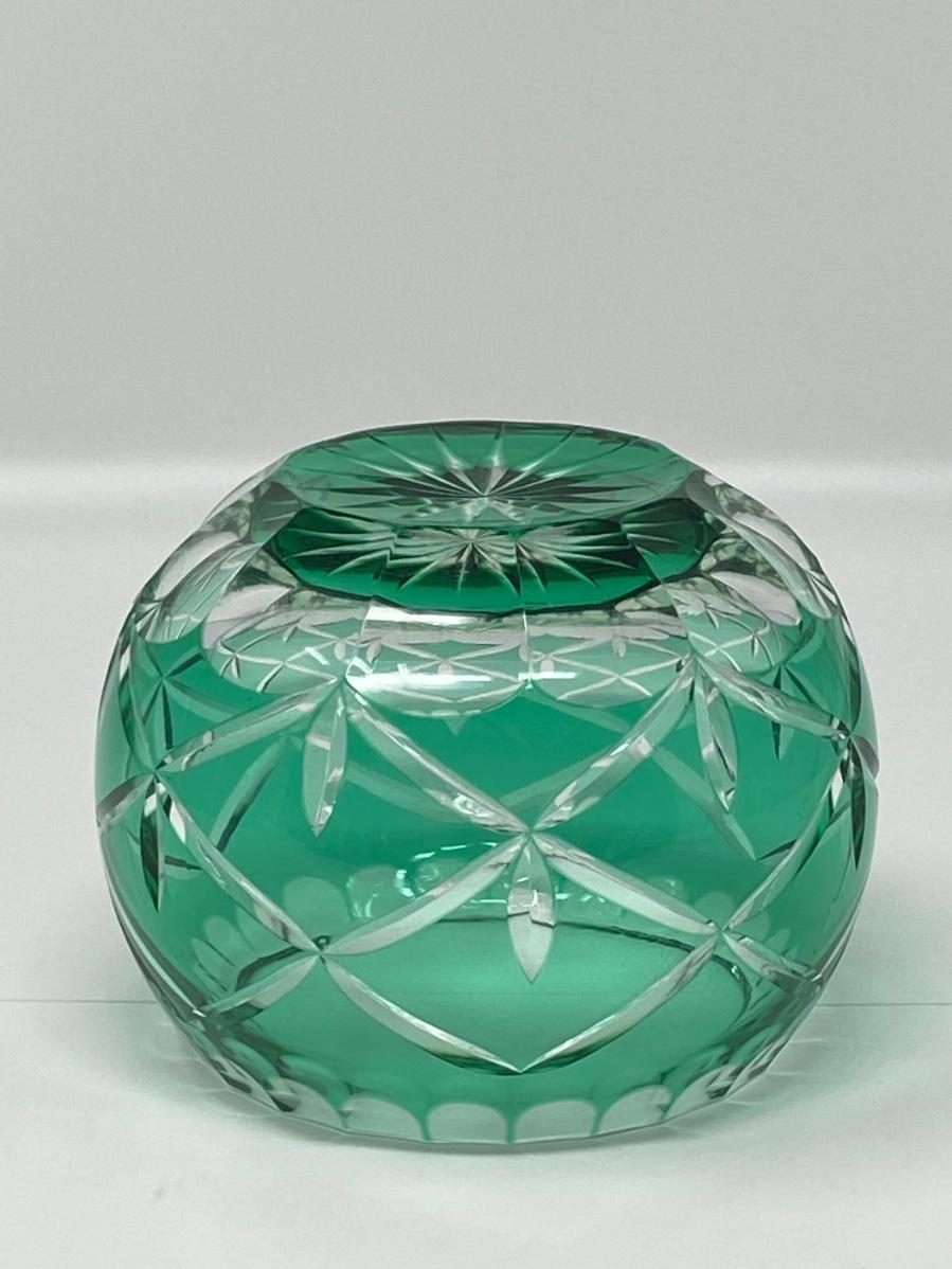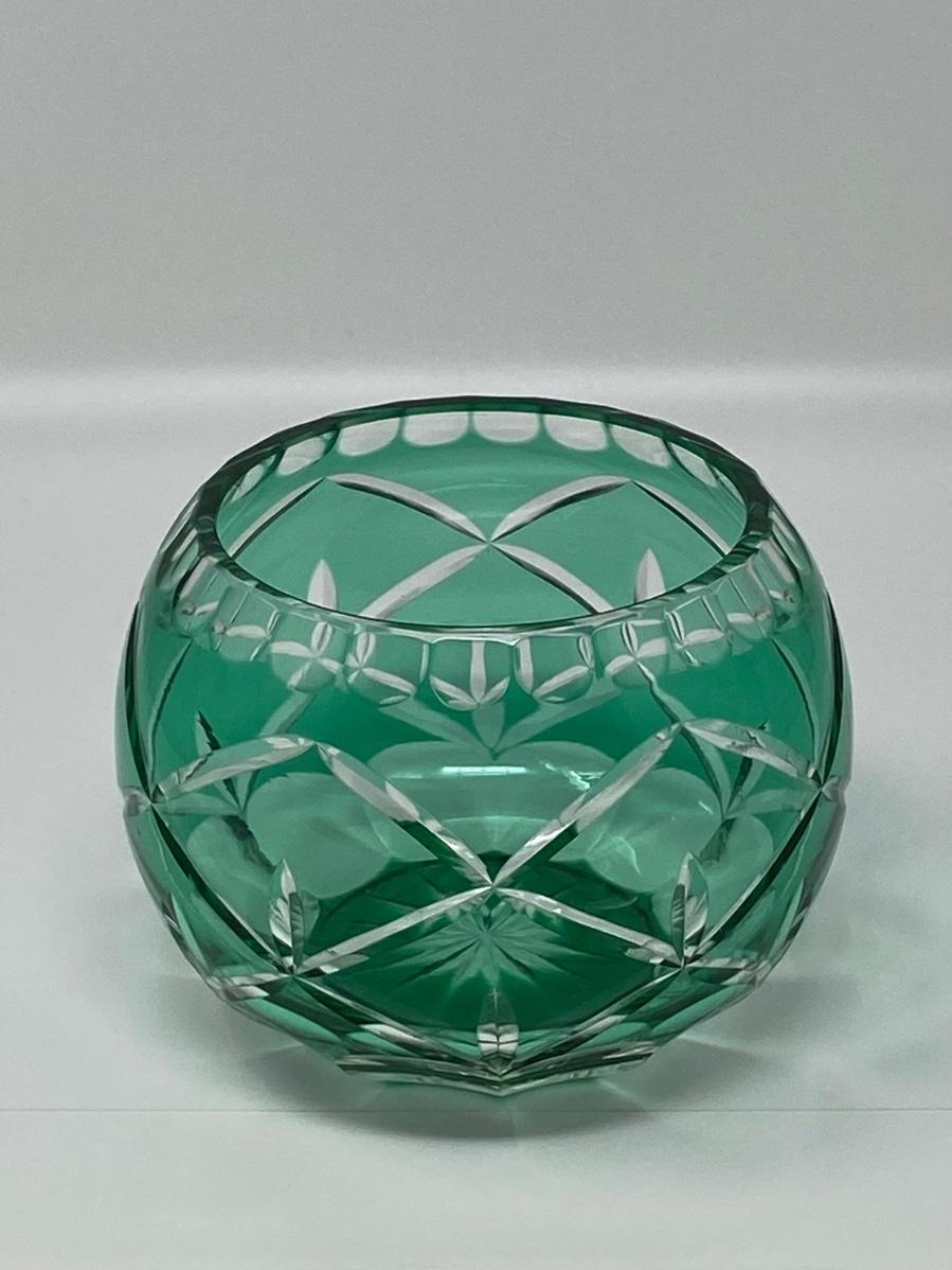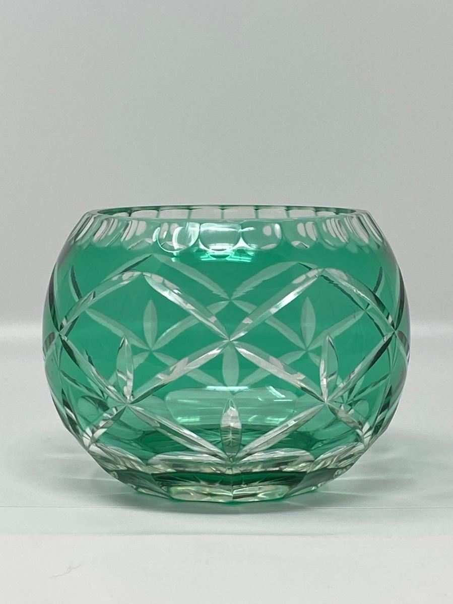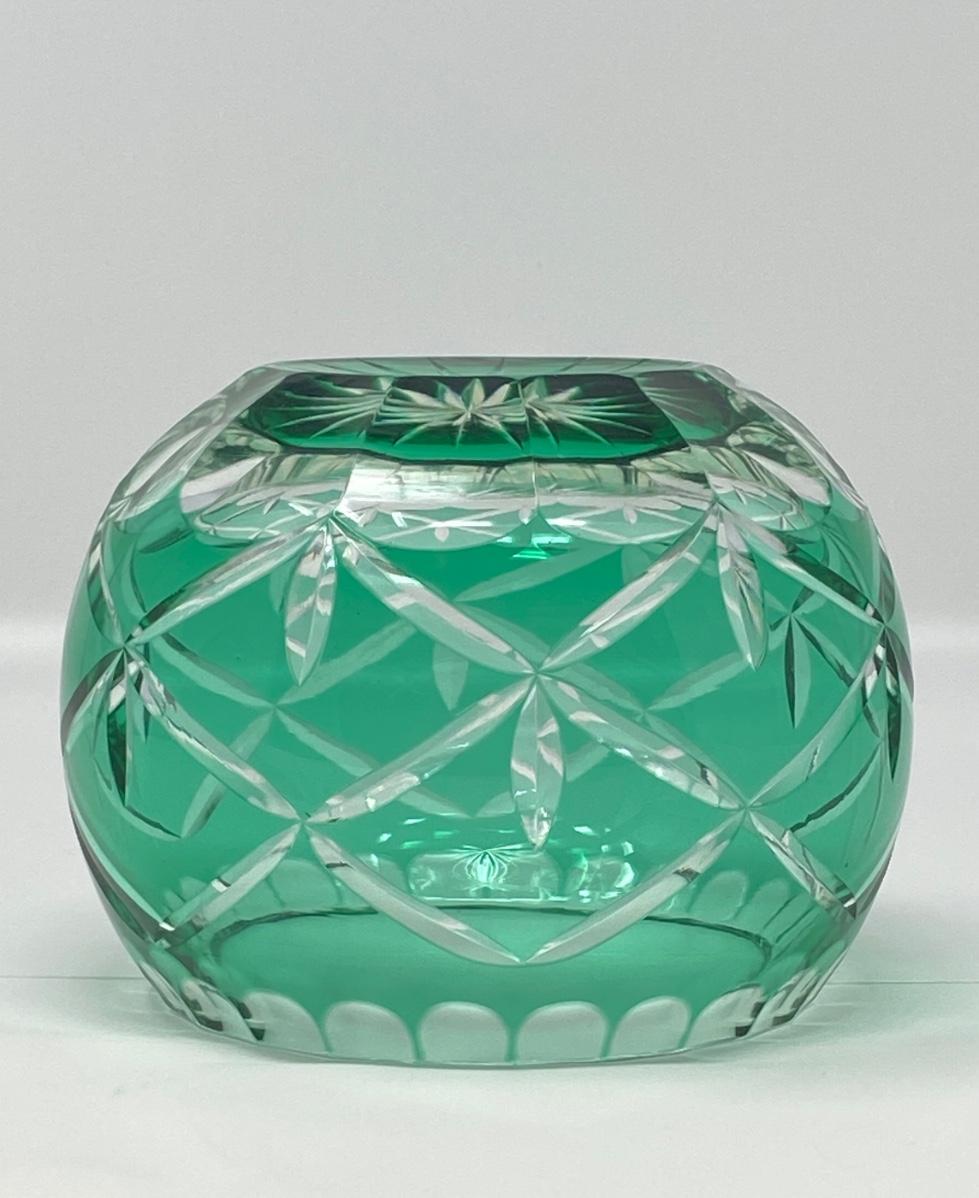 4in Emerald Color and Clear Cut Crystal Bowl