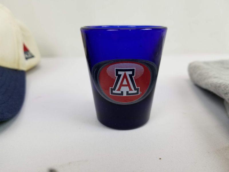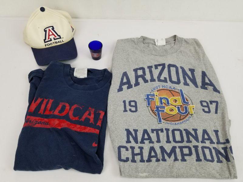4pc Arizona Wildcats Lot: 2 Shirts, 1 Hat, 1 Shot Glass