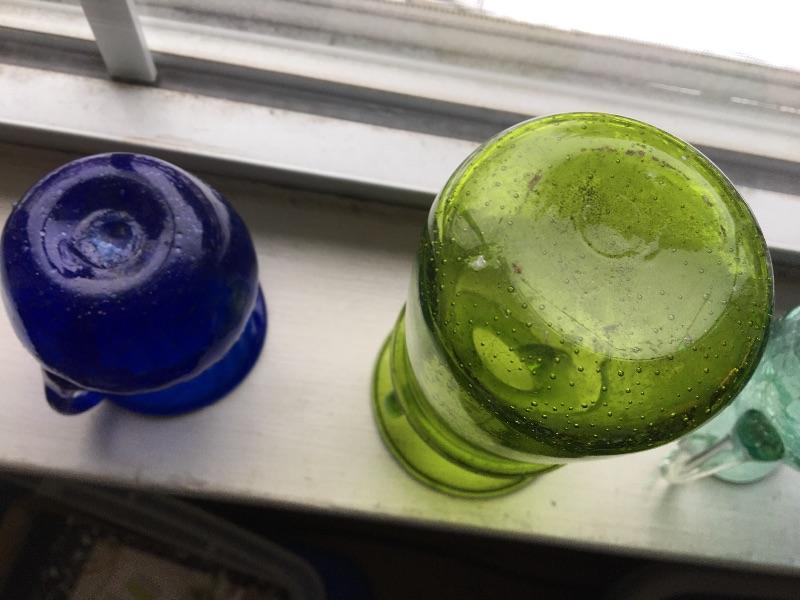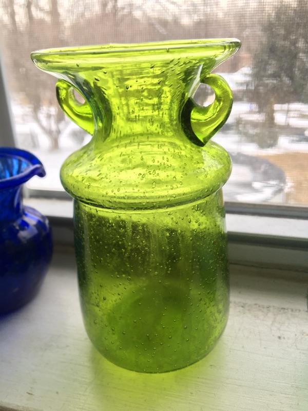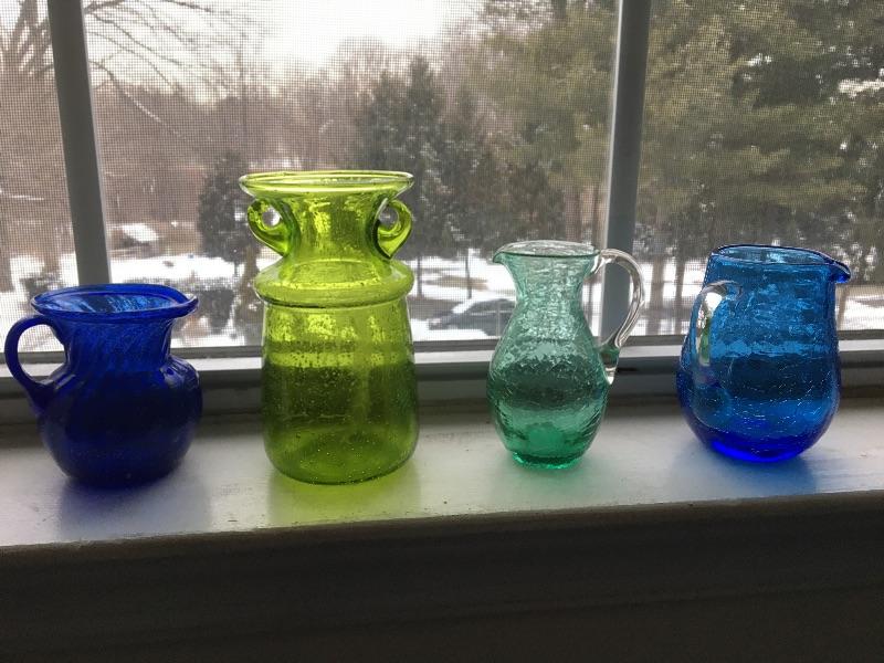 4pc Colored Blown Glass Pitcher and Bud Vase Collection