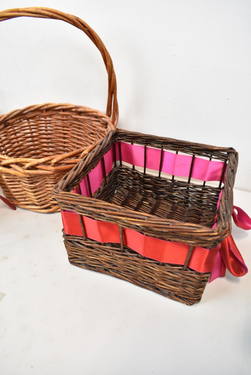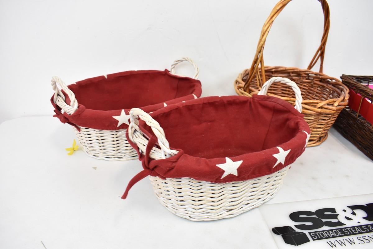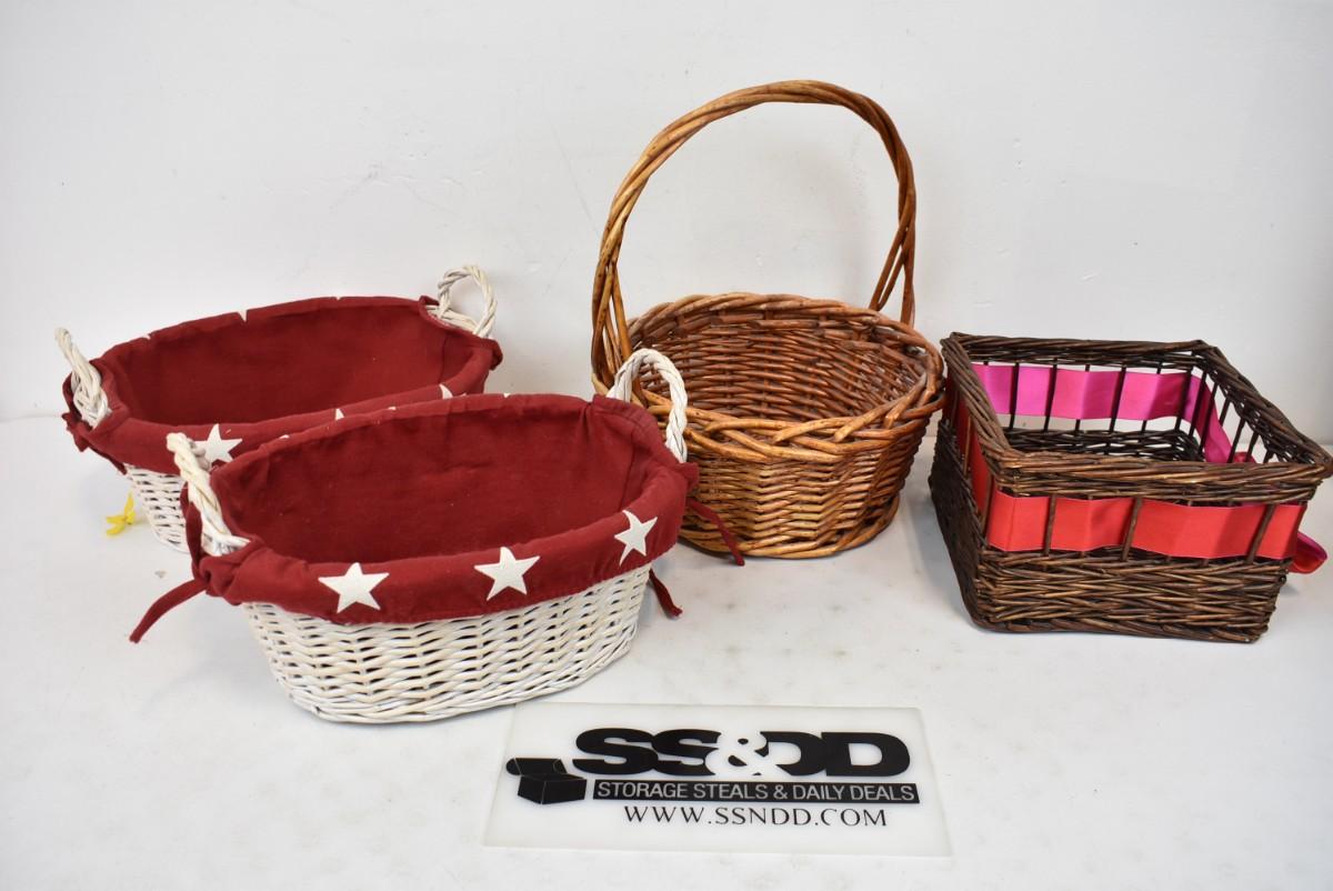 4pc Decorative Baskets: Red Cloth w White Stars, Pink Ribbon, etc