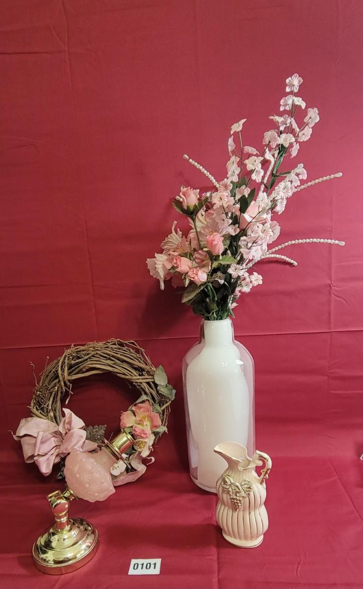 Vase: 5 1/2" ; Vase with floral arrangement is 24" tall.