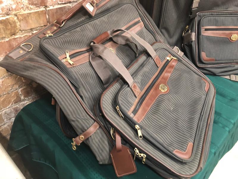 Other than some surface dust from storage this matching Westwood luggage set by Ricardo of Beverly Hills is in near new condition...4 piece...Leather and fabric....
