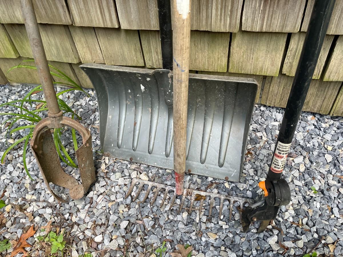 Includes Fiskars limb cutter and snow shovel.