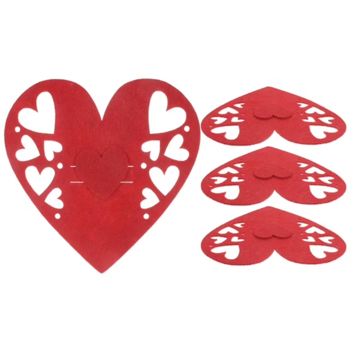 4pcs Valentine's Day Cutlery Holder Valentine's Day Heart Shaped Utensils Bag Holder Party Favor