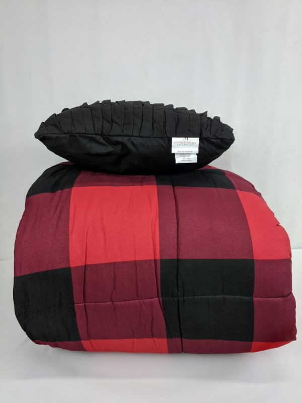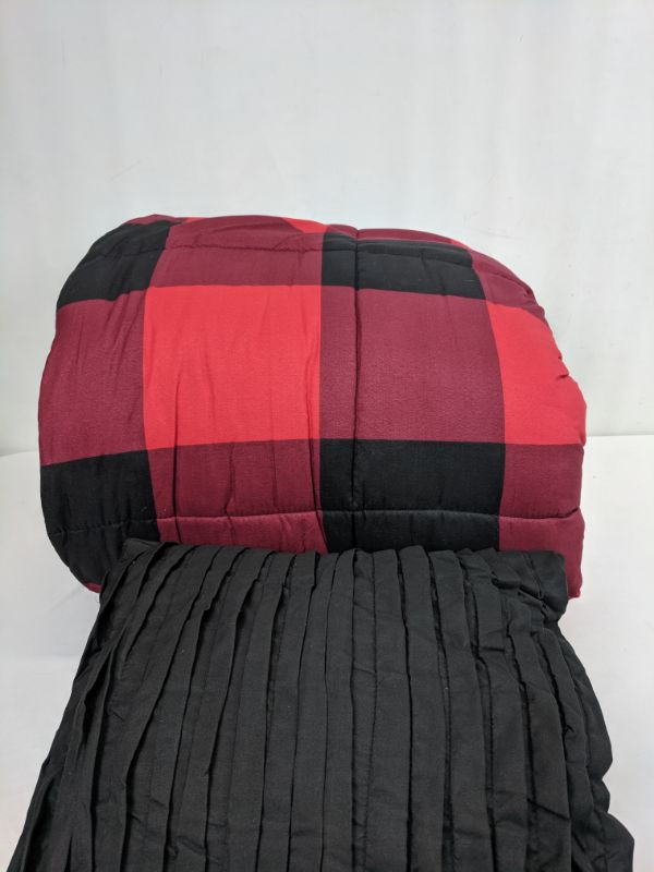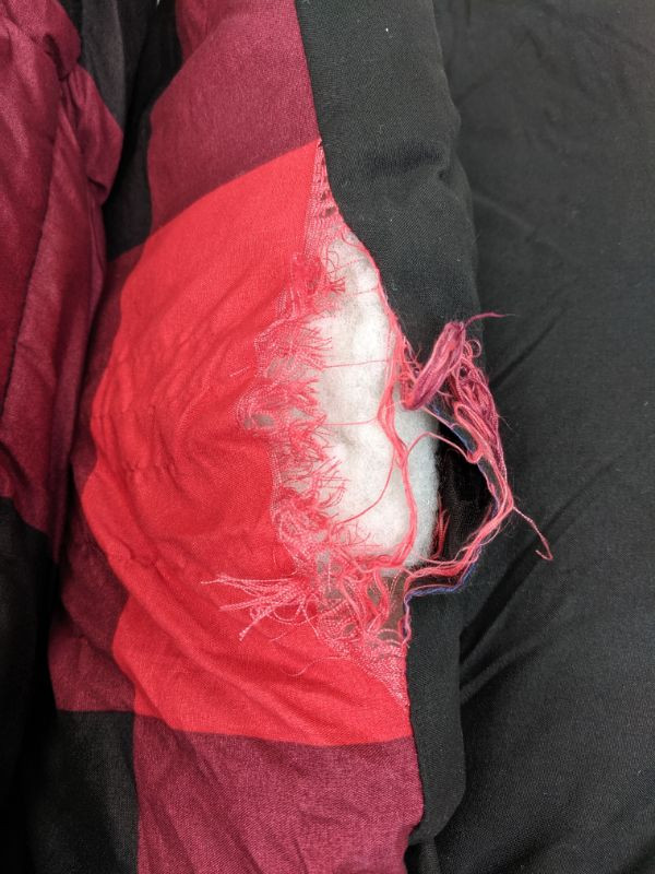4-Piece Comforter Set Buffalo, Red/Black, Full/Queen - Tear in Blanket