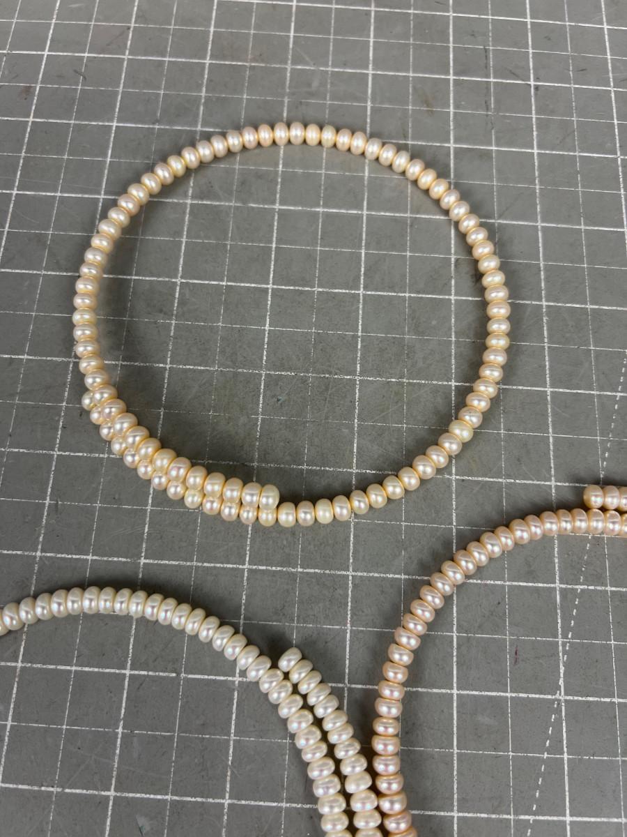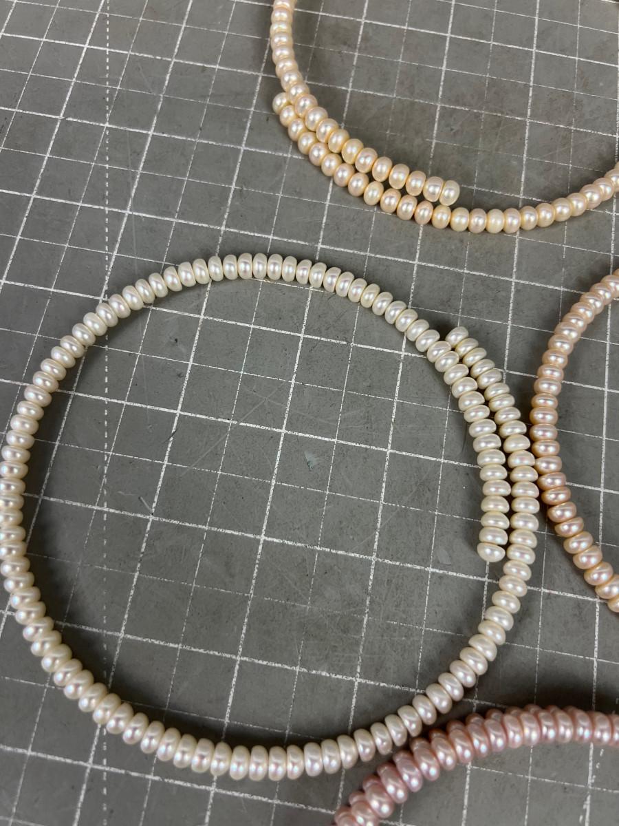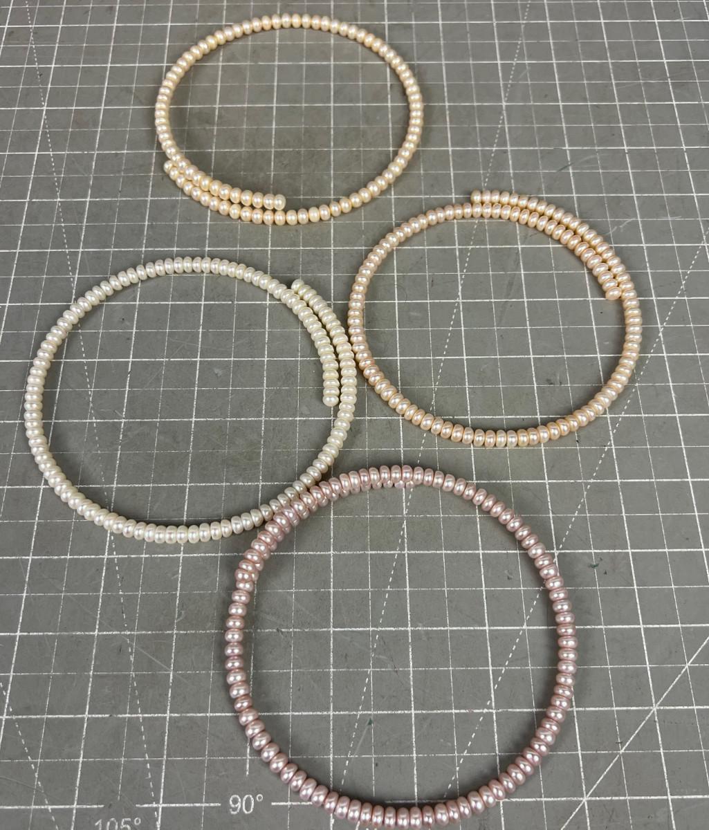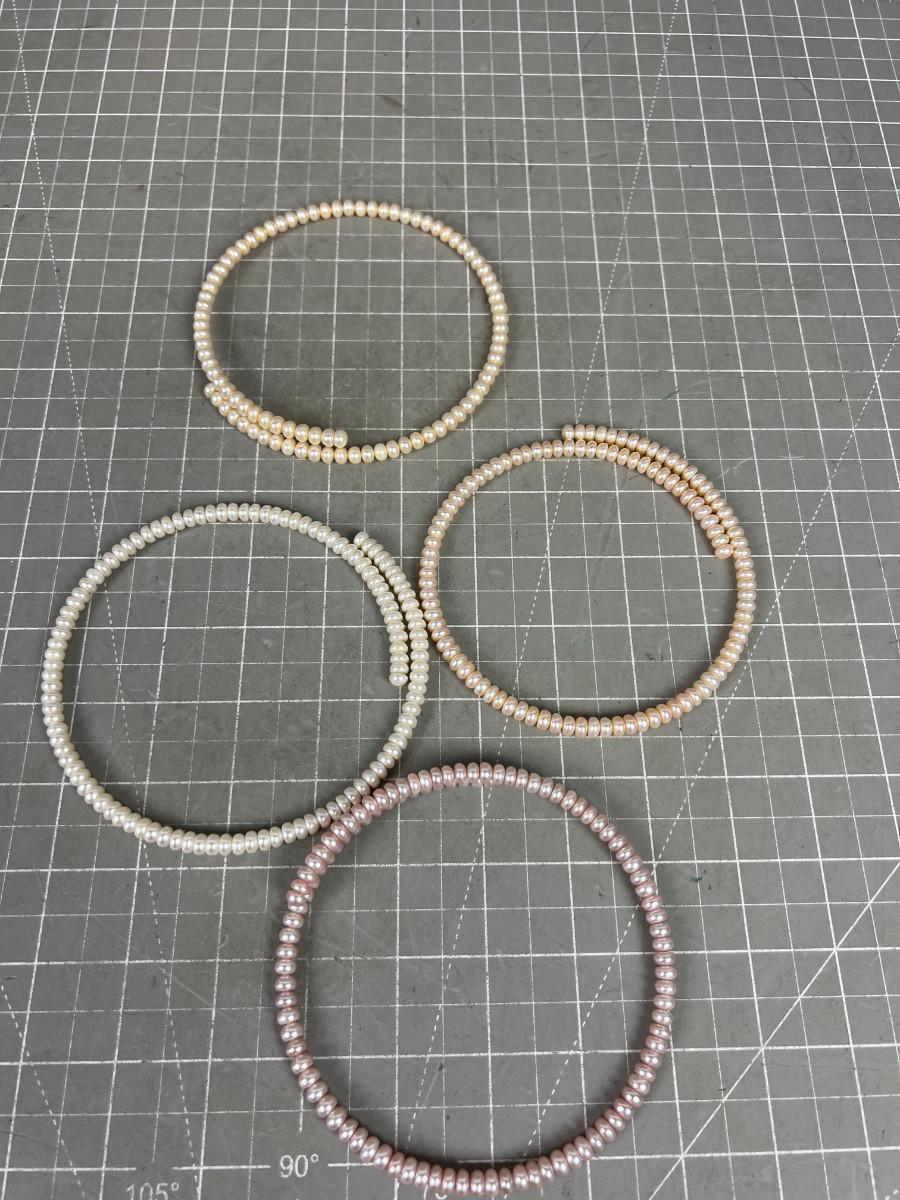 (4)Real Pearl Pearls on Wire No Clasp: Rose Amber and white