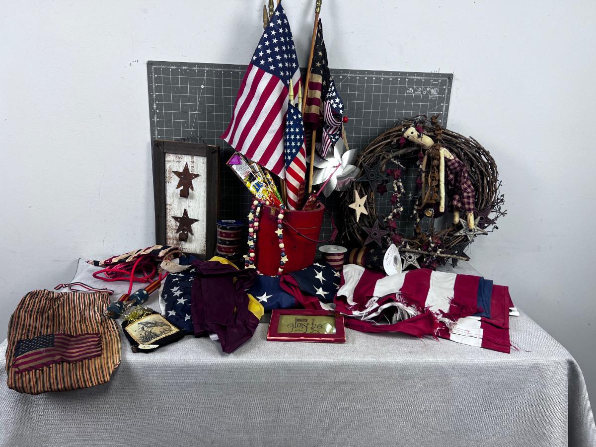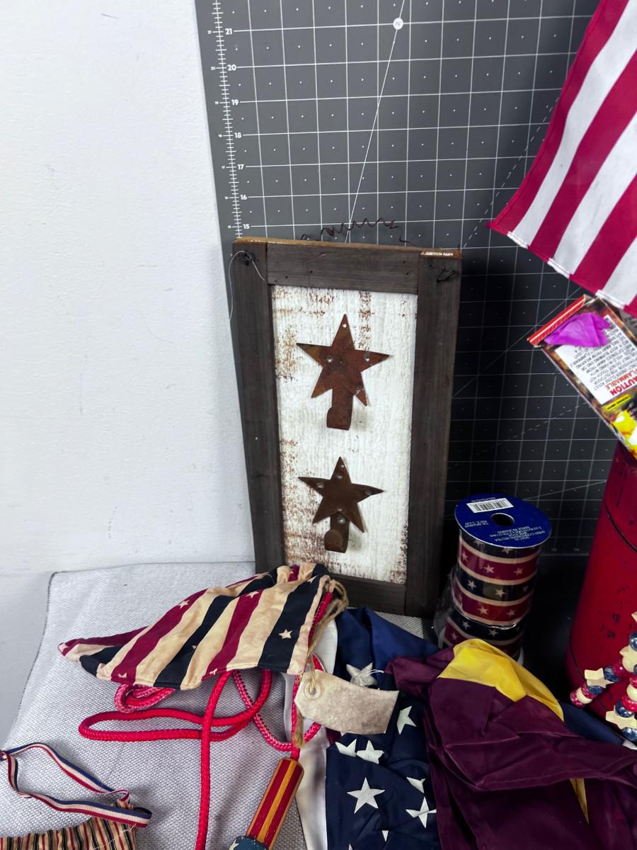 4th of July Flags, Bunting Etc. (Large Box of Patriotic Enthusiasm)
