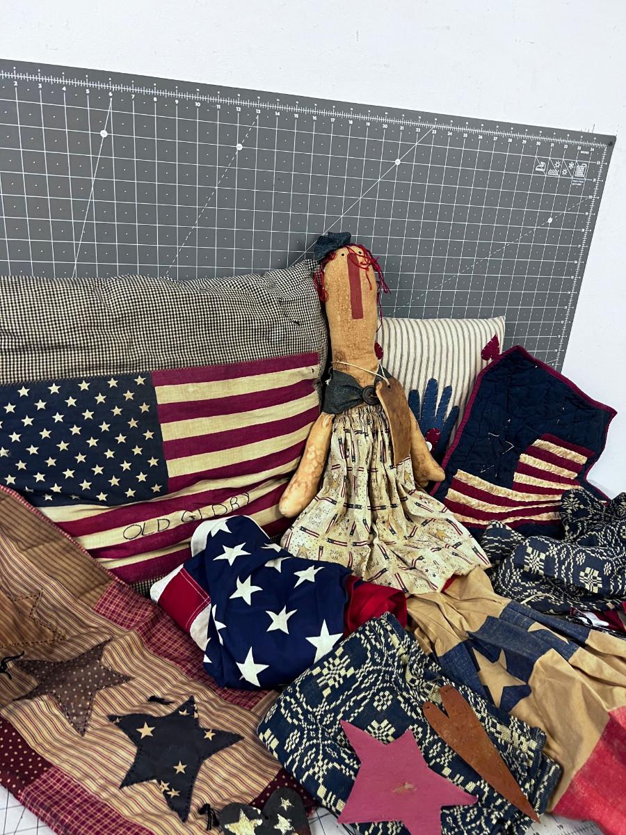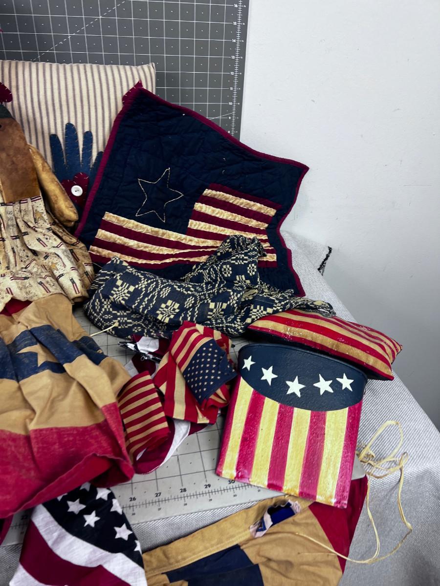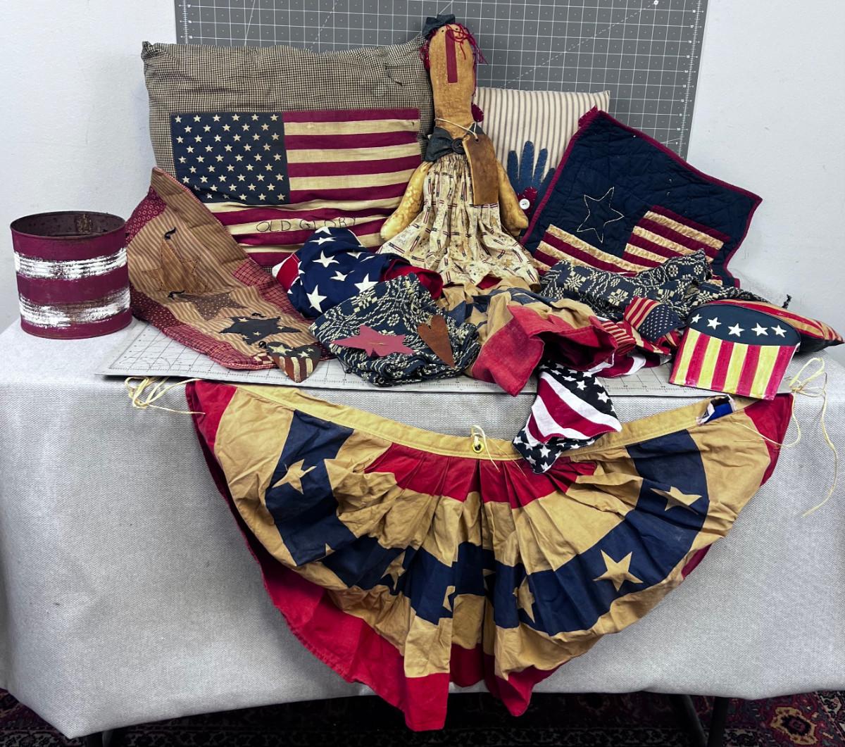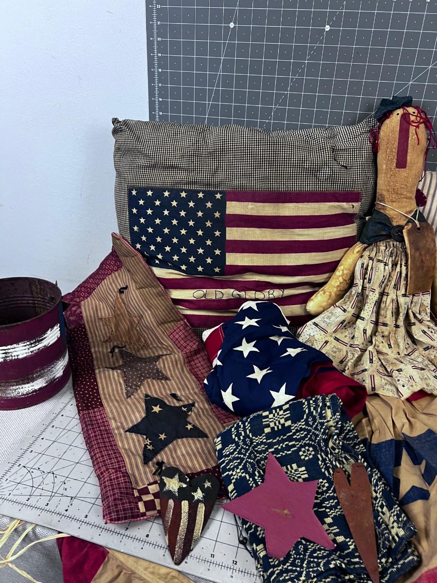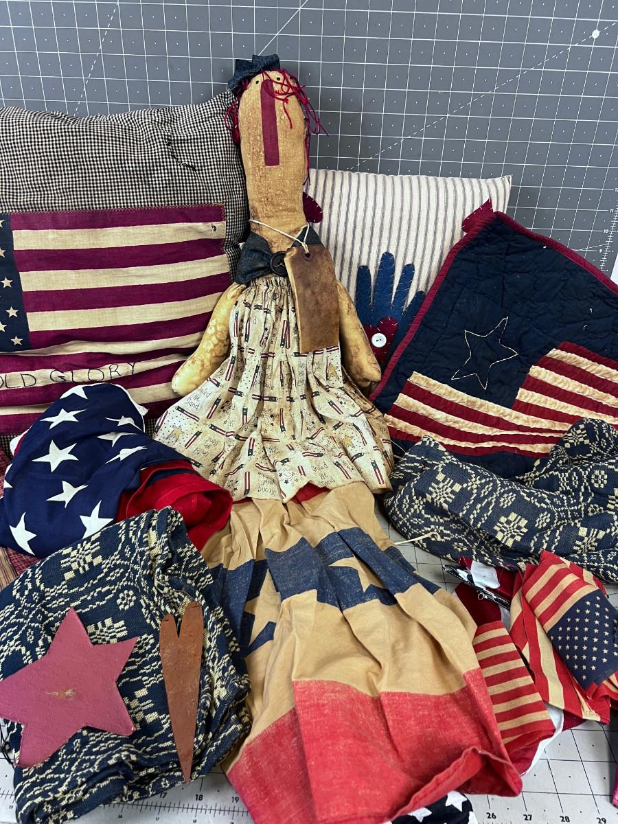 4th Of July: Pillows, Bunting, Tin Wall Pocket, Dolls and Cotton Flag
