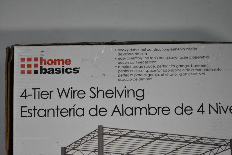4-Tier Wire Shelving by Home Basics. Holds 45 lbs. per shelf. 21"x13.8"x46.5" - New