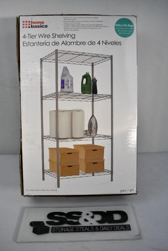 4-Tier Wire Shelving by Home Basics. Holds 45 lbs/shelf. 21"x13.8"x46.5" - New