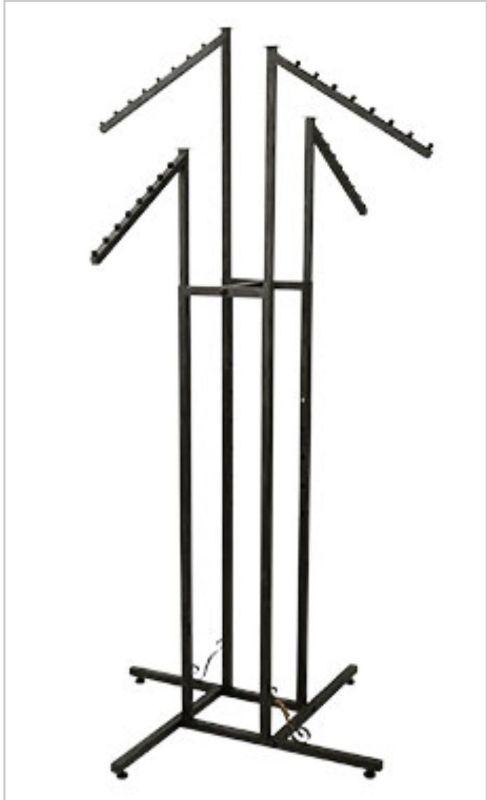 Adjustable from 48" to 72" in height. Slant arms are 18" long. Matte black color.