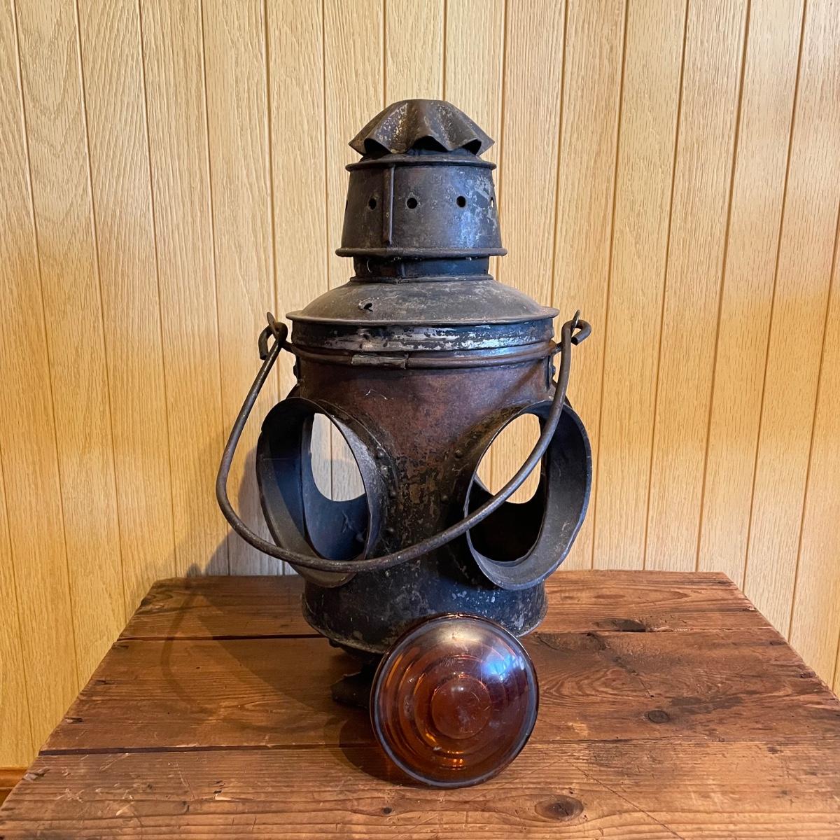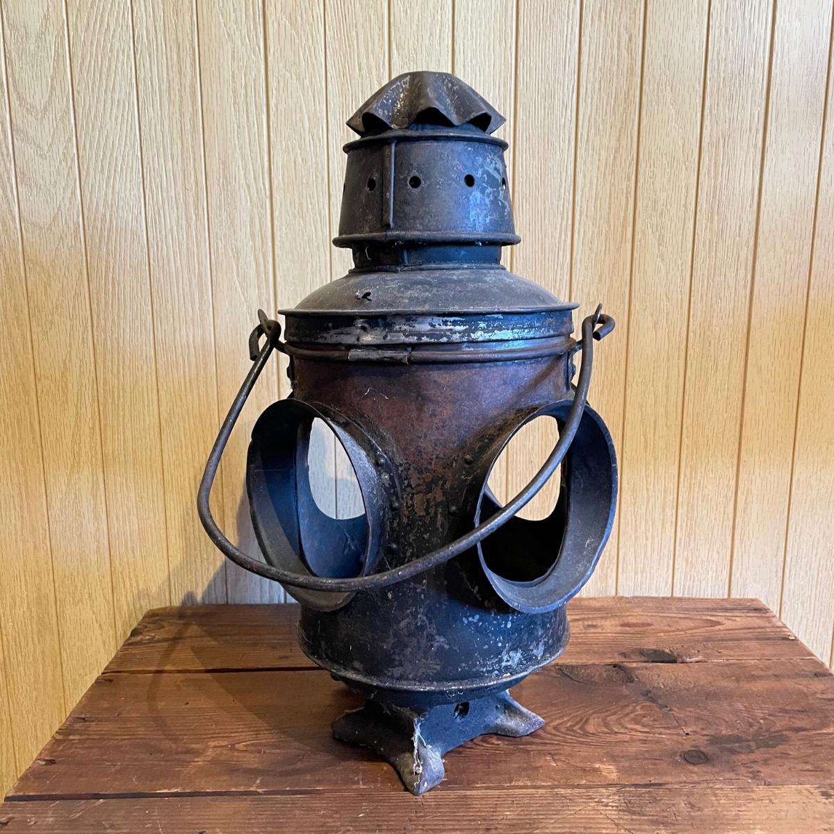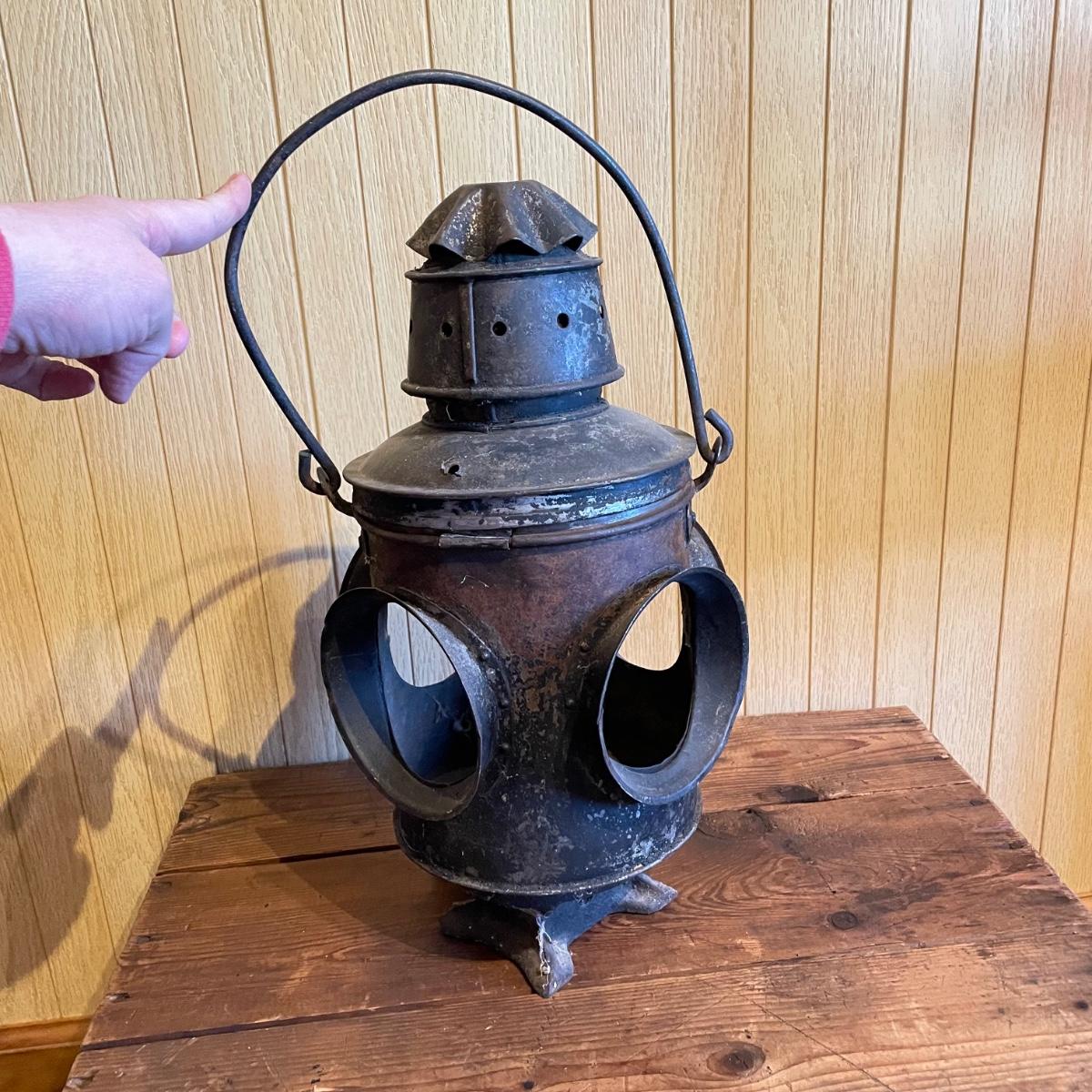 Vintage Chicago, Milwaukee & St. Paul 4-way switch rail yard lamp. Lamp is missing lenses, but we’ve added an amber 4” lens. Lamp is about 8”sq x 16” without the handle extended. See images. Shipping available.
