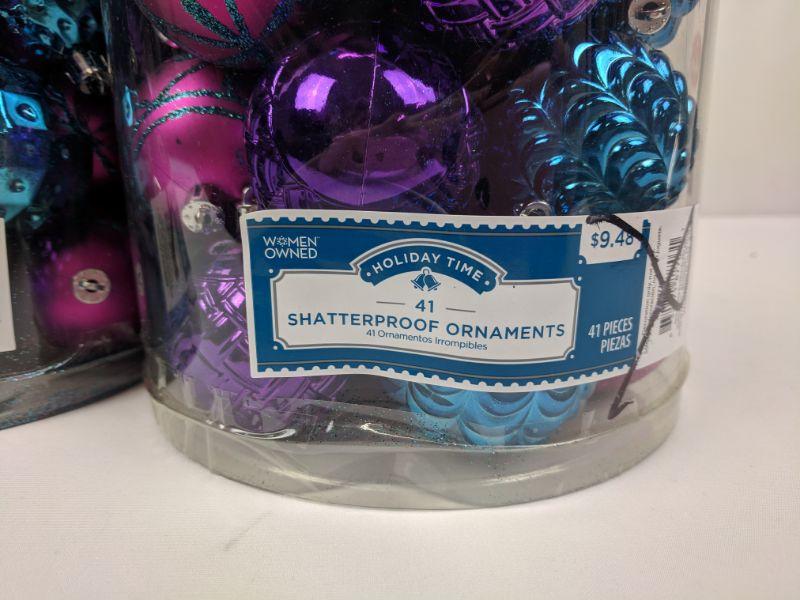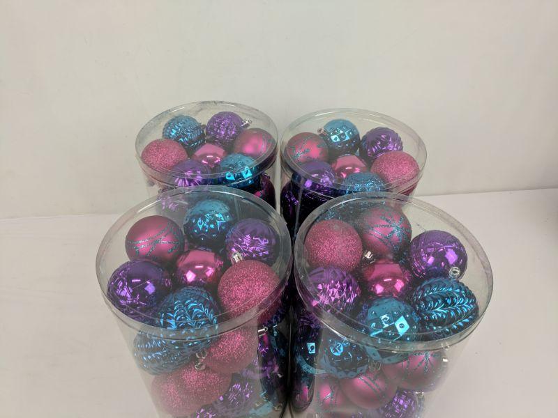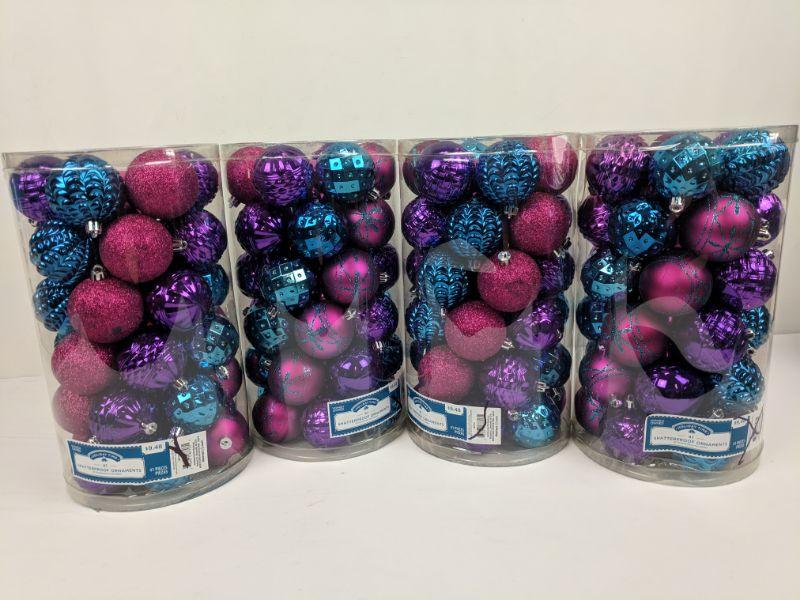 4 Containers of 41 Shatterproof Ornaments, 164 Ornaments, Purple/Teal/Pink, Qty 4 - New