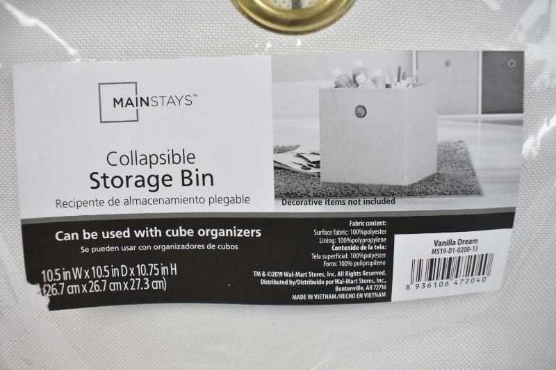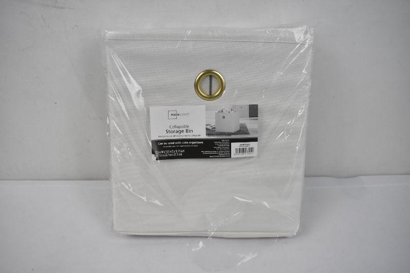 Quantity 4 Collapsible Storage Bins, White/Cream Fabric 10.5" x 10.5" x 10.75" - New