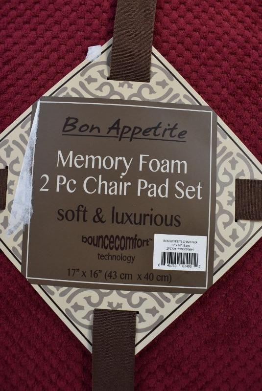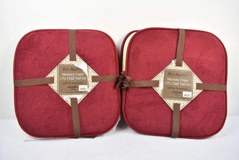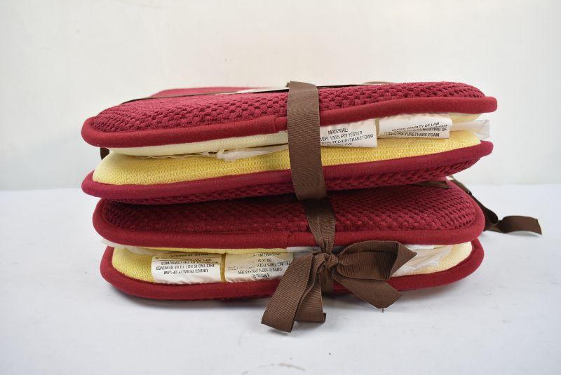 Bounce Comfort Bon Appetite Memory Foam 17" x 16" Cushioned Chair Pads, Two Sets of 2, Dark Red - New