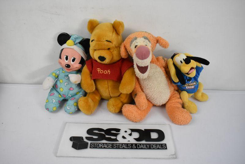 4x Disney Stuffed Animals: Mickey, Pooh, Tigger, and Pluto