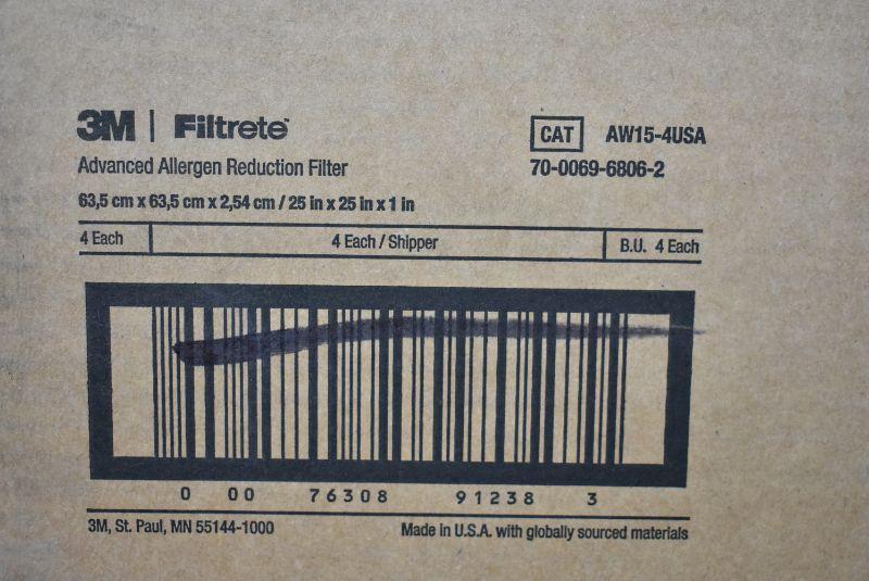 Pk of 4 Filters, Filtrete 25x25x1, Advanced Allergen Reduction HVAC Furnace Air Filter, $58 Retail - New