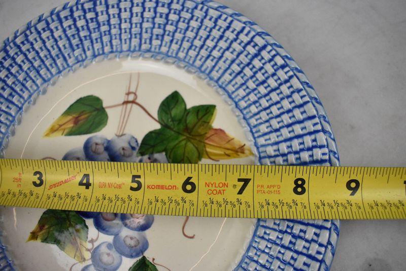 Jay Wilfred Decorative Plates, Qty 4. Blue Basketweave Design with Fruit. Kitchen wall decor made in Portugal