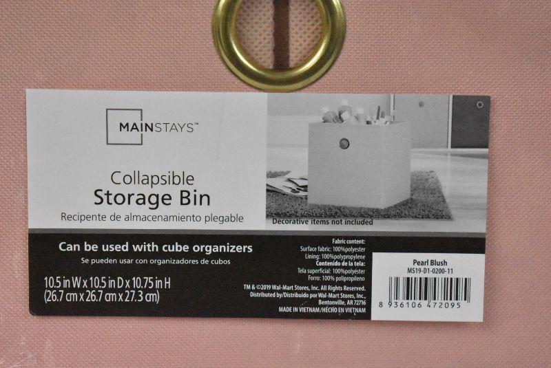 Mainstays Collapsible Fabric Cube Storage Bins (10.5" x 10.5"), Set of 4, Pearl Blush Pink - New