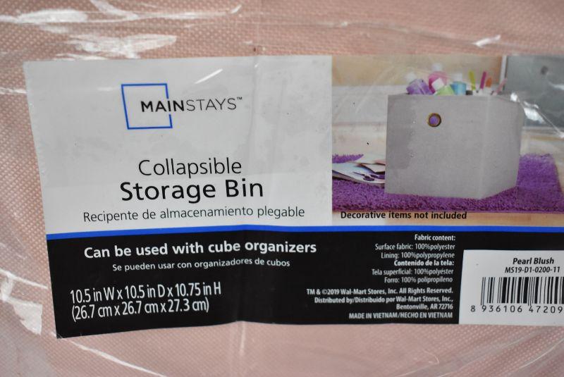 Mainstays Collapsible Fabric Cube Storage Bins (10.5" x 10.5"), Set of 4, Pearl Blush. Open Package - New