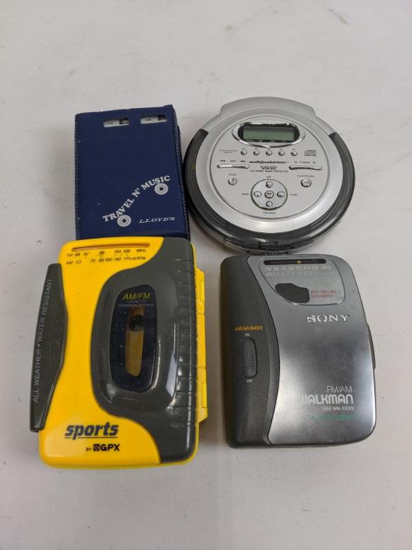 4x Portable Audio Devices - Walkman, CD Player, Radio, Sports Tape Player