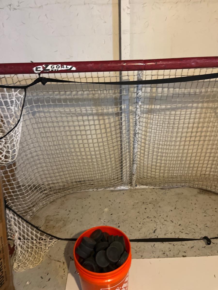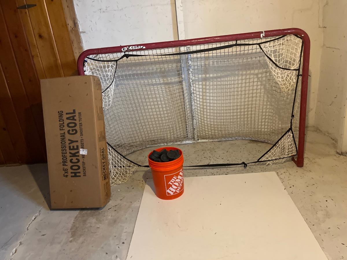4x6 Professional folding hockey goal with pucks and sliding sheet