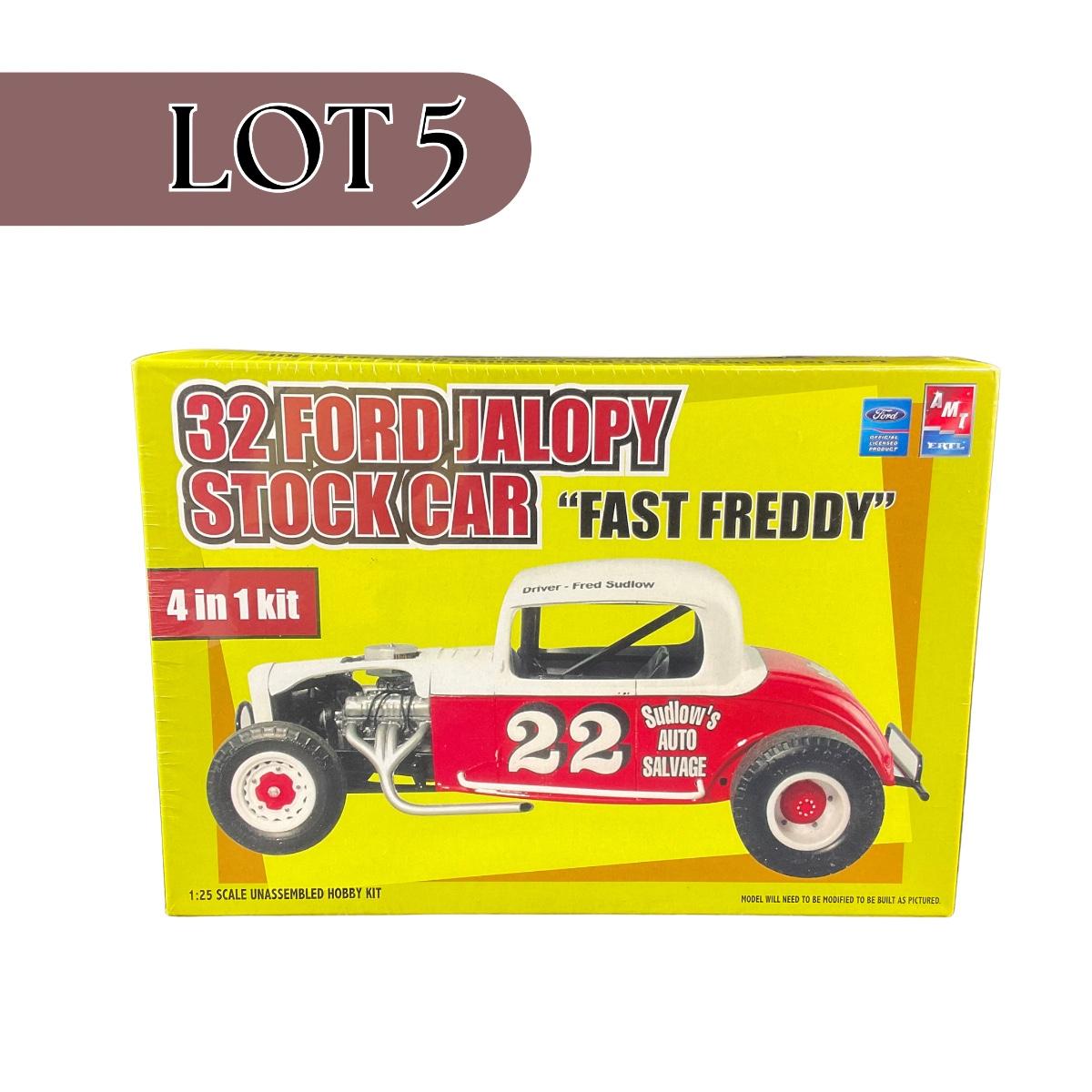 -5- 1:25 SCALE | 32 Ford Jalopy Stock Car “Fast Freddy” Model Kit | Sealed