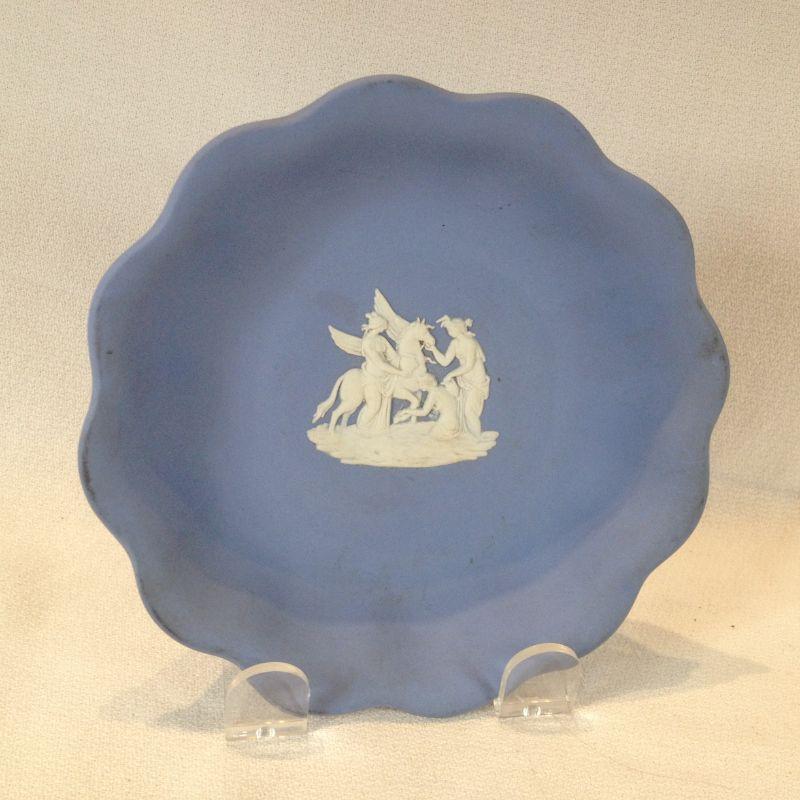 This lot is for one Wedgwood China 1961 Plate, Cream & Blue Jasperware Porcelain. Plate has the traditional round scalloped edge. Use for rings or as a jewelry tray on your boudoir or just to display,