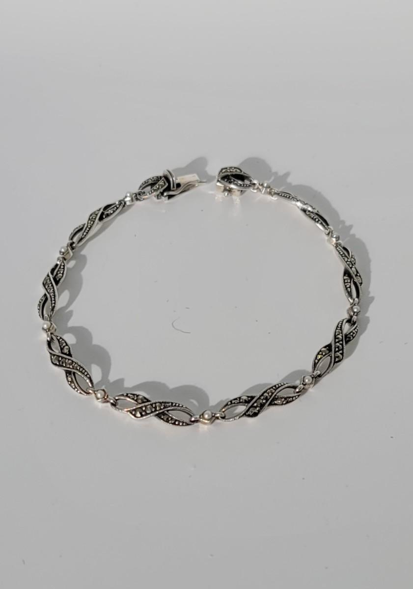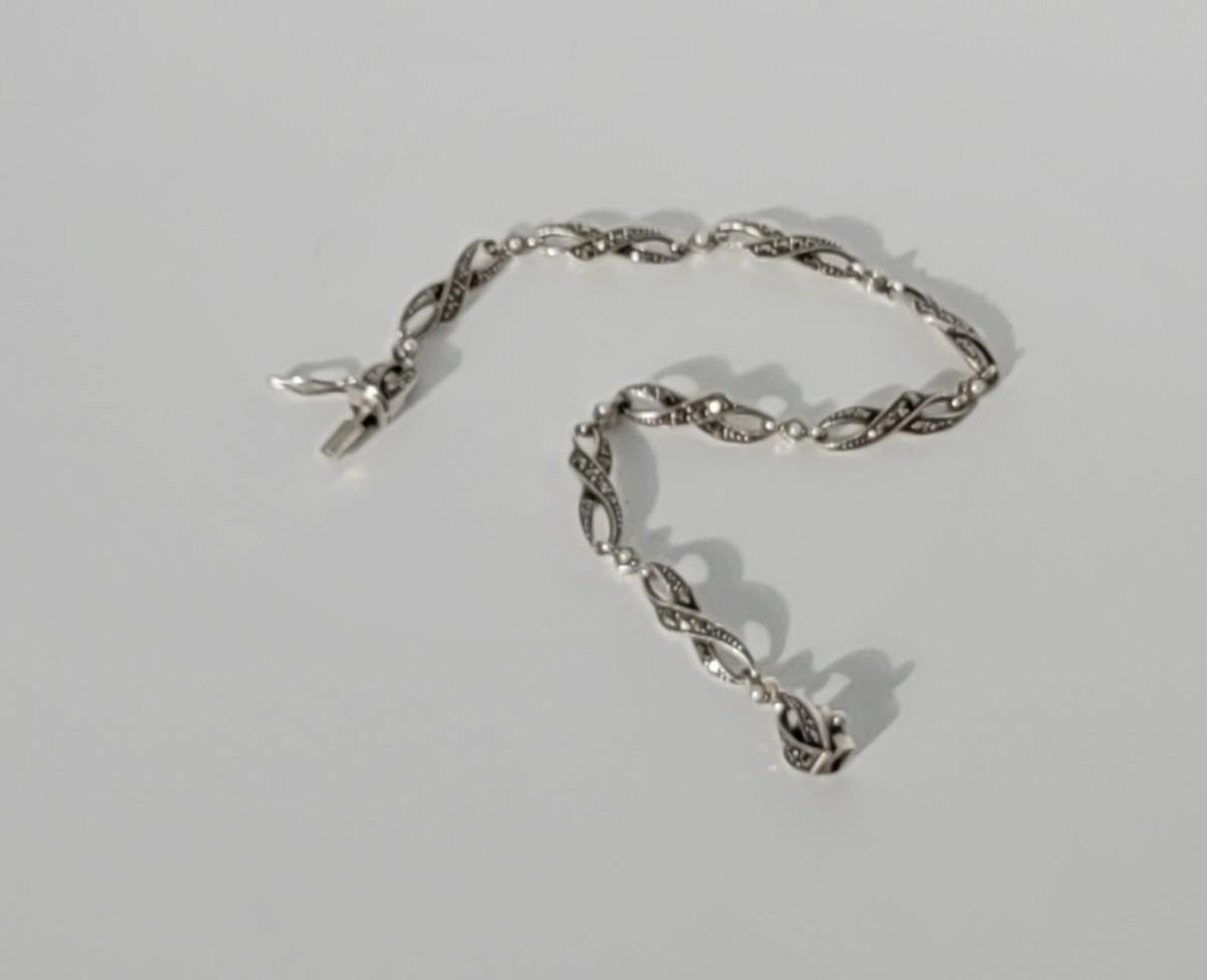 5: 925 Sterling Silver Marcasite w/Pearls Bracelet &  Marcasite Heart Earrings