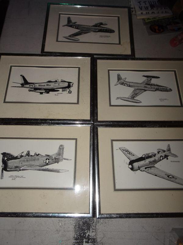 5 Airplane Ink Paintings, Signed & Dated Joe Milich