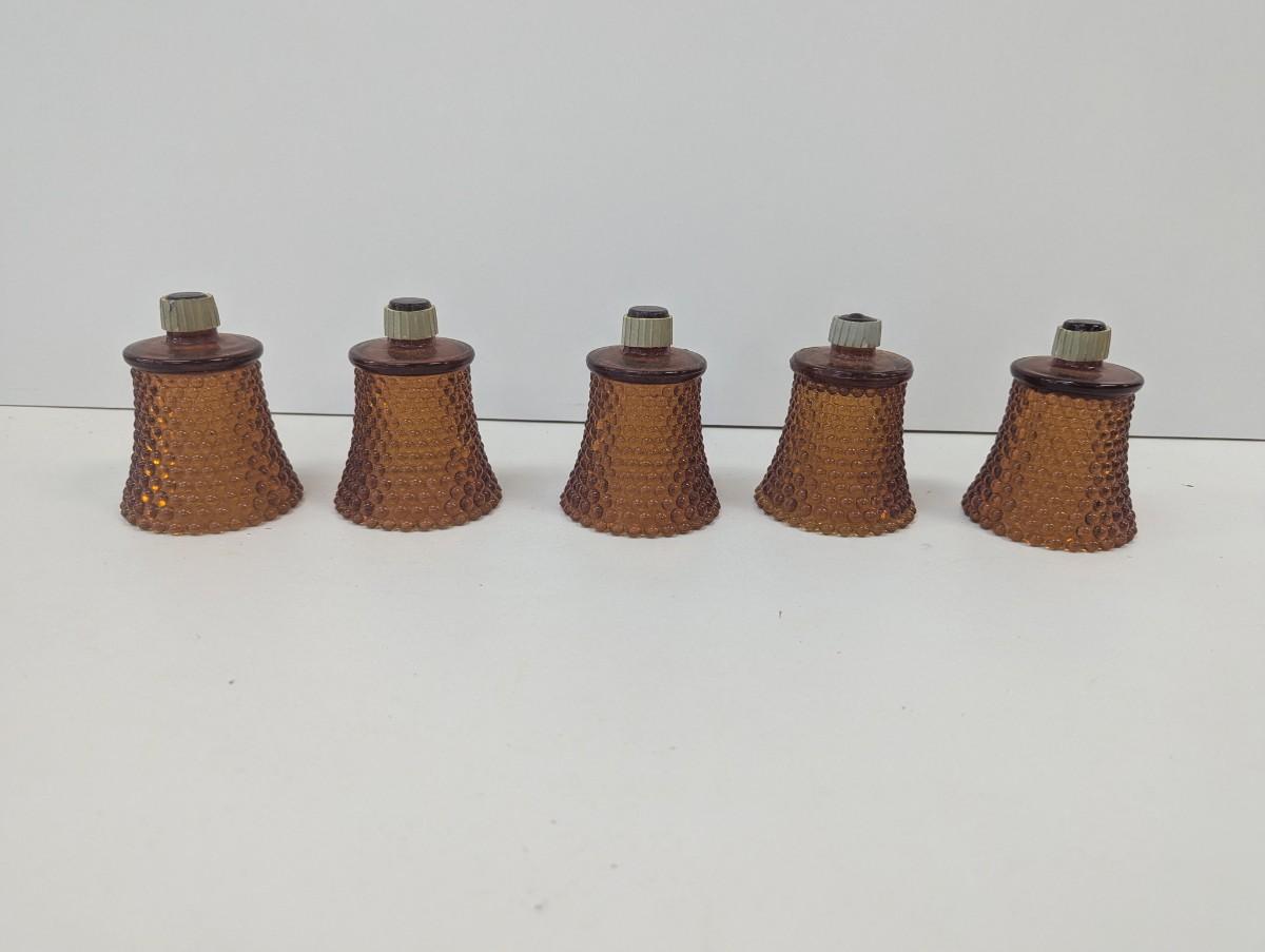 5 - Amber Hobnail Peglite Votive Candle Holders 3 1/4" Tall