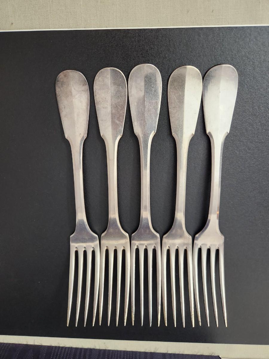 5 Antique Alfe Nide "67" Christofle Silverplated Forks 8 3/8"