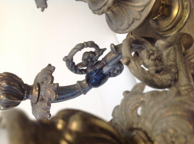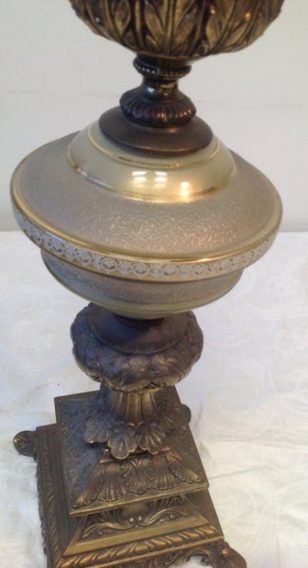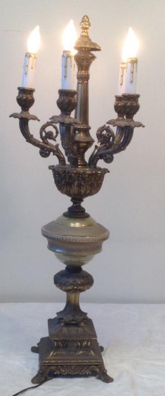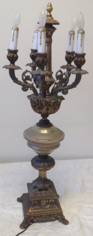 Description: 5 arm brass chandelier table lamp with a mix of glass and brass body. Measuring approximately 32 x 7. Shipping cost: $75 excluding Hawaii, Alaska and California.