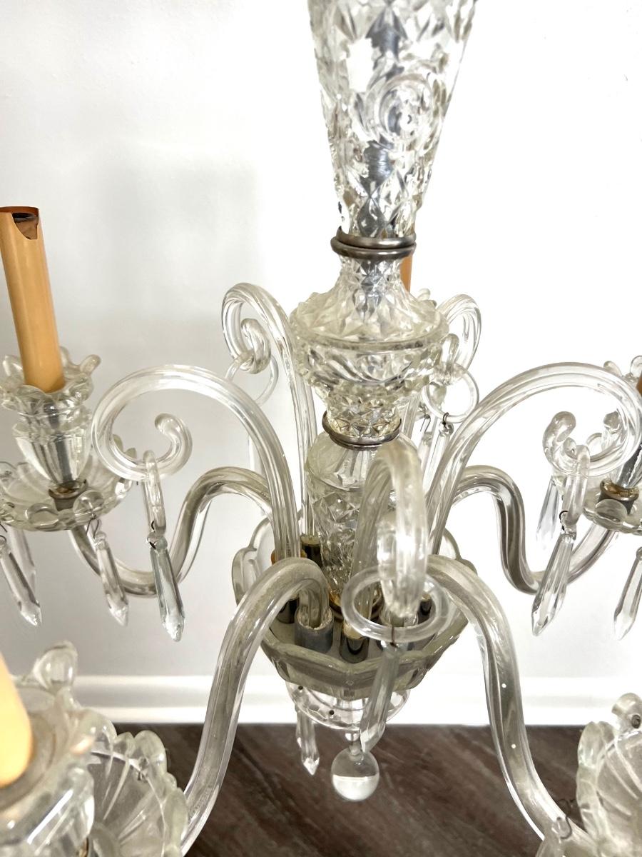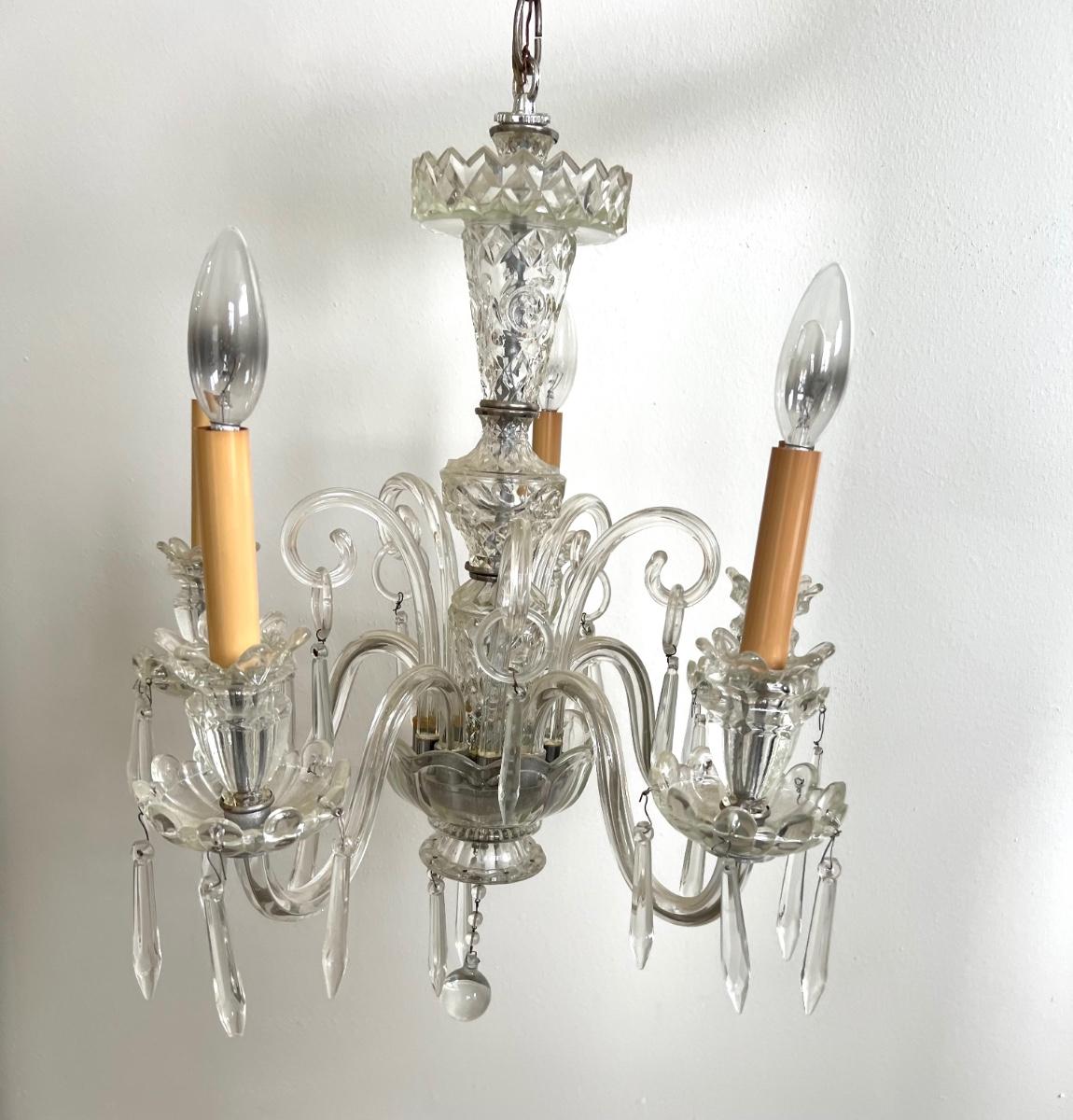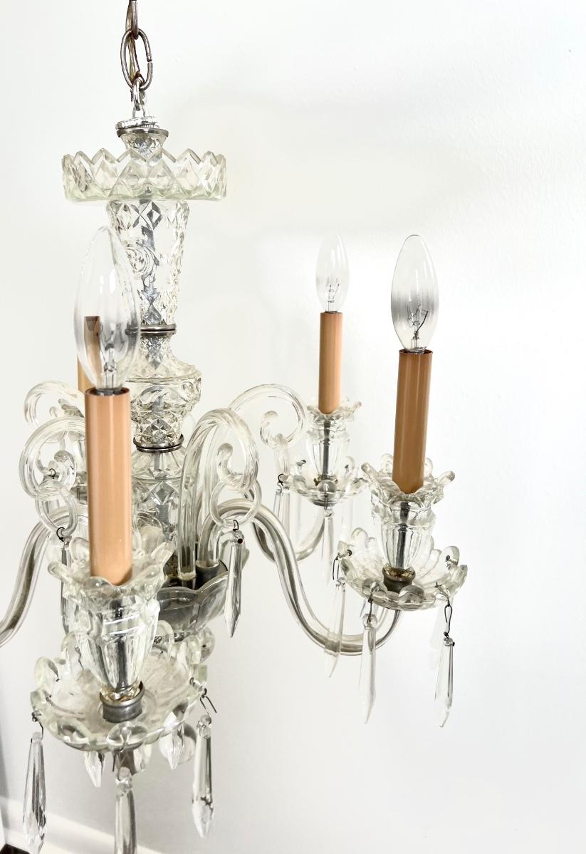 Traditional 5 Arm Clear Crystal Chandelier. Some crystals are missing, one bulb holder has a small crack. Could be used as a light fixture or an amazing house! Selling as Is, not tested.