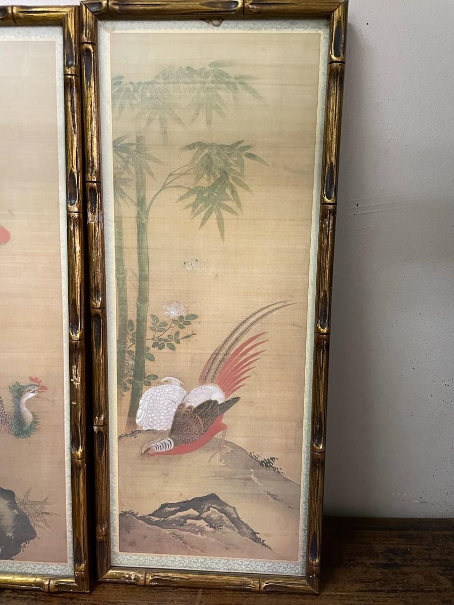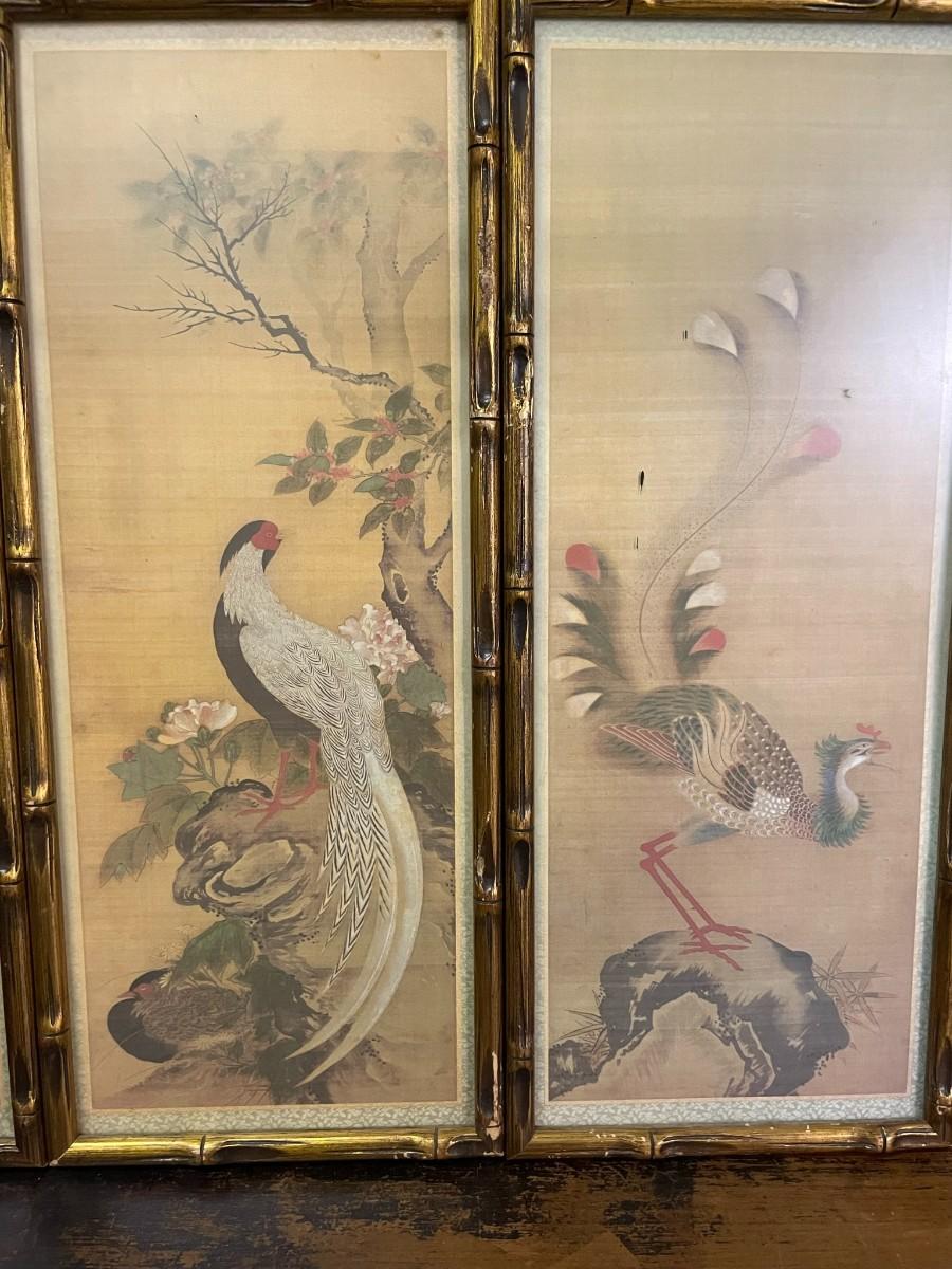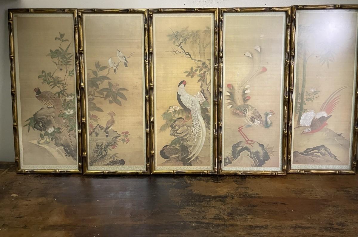 5 Prints of Asian Art in Gold Tone Frames Each pieces is 24" x 10"
