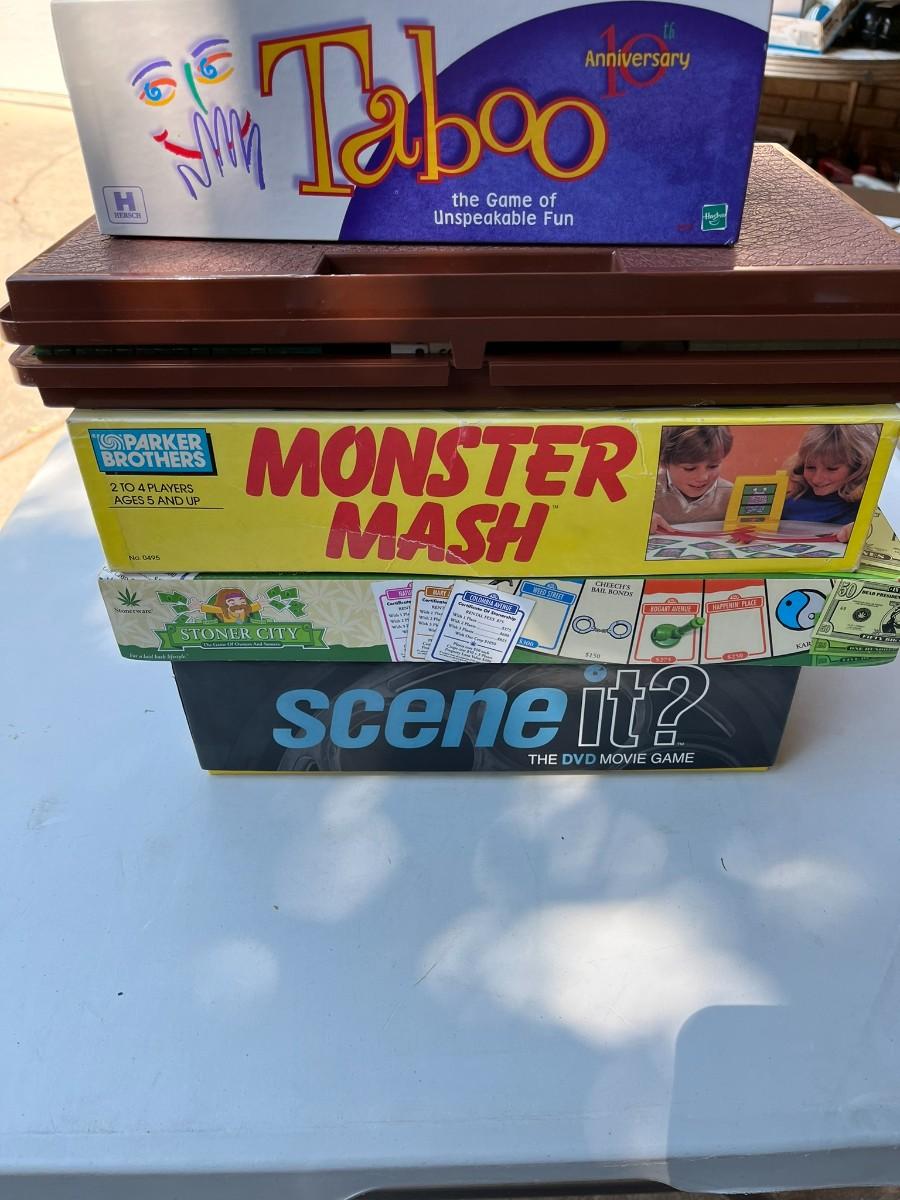 5 Assorted Board Games: Taboo, Monster Mash, Stoner City, Scene It