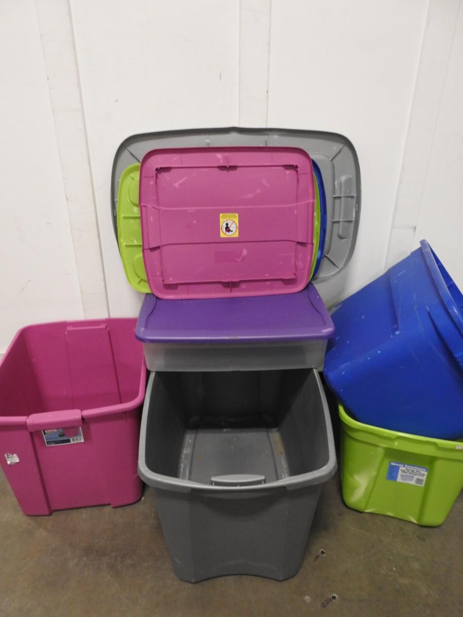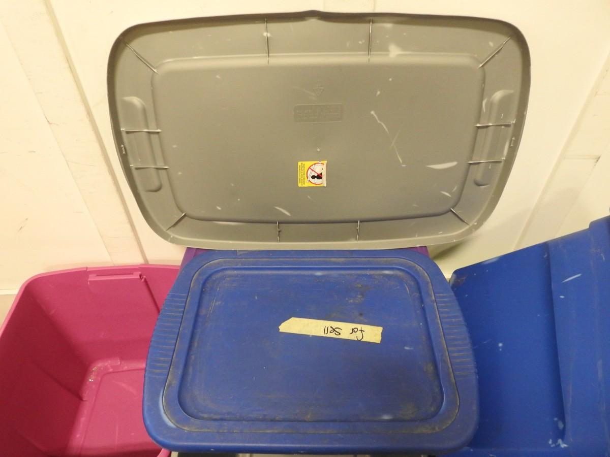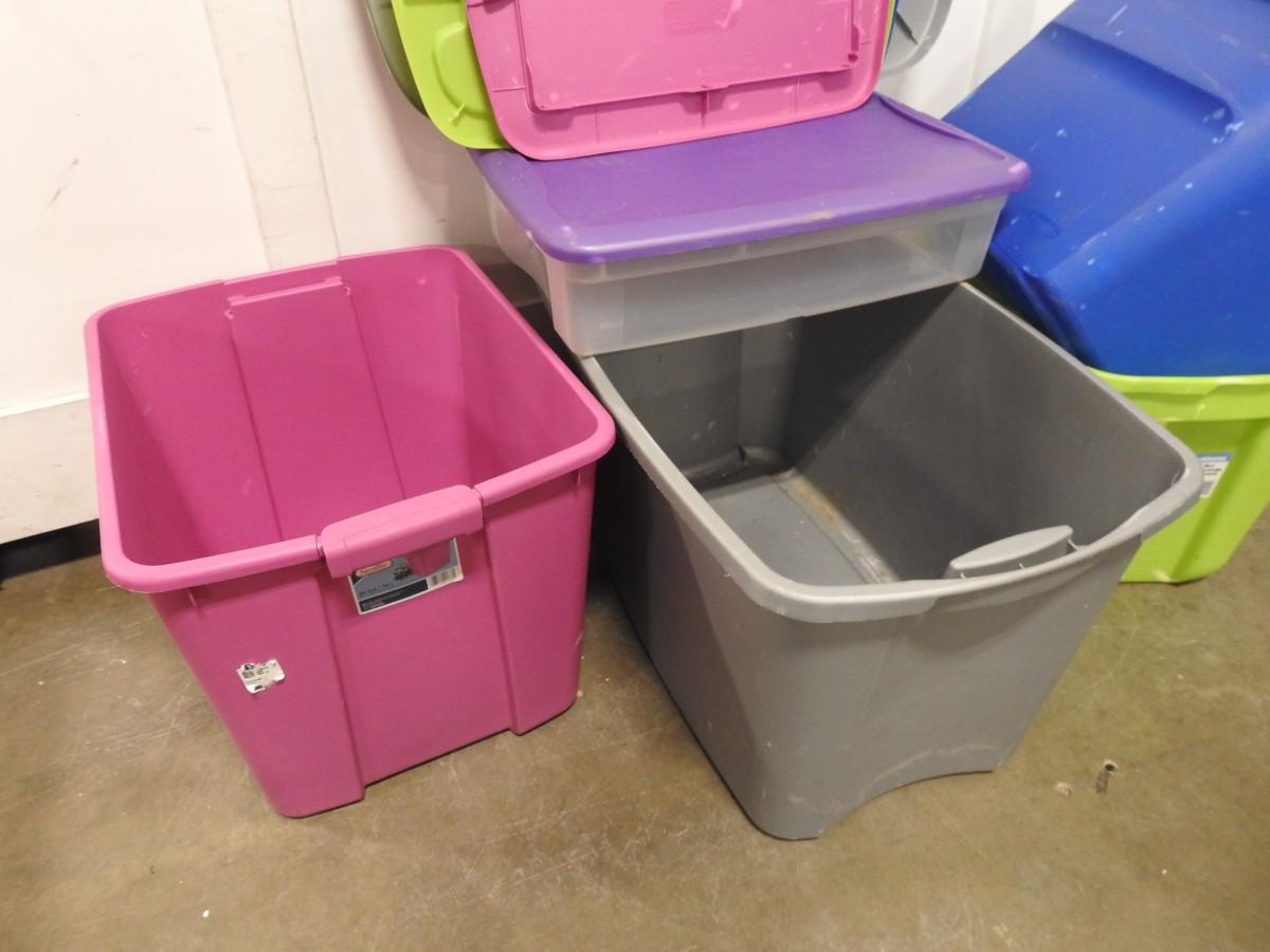 5 Assorted Plastic Totes, All With Lids, Some Slight Cracks in Lids